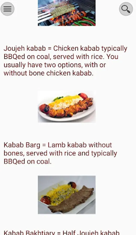 Food info with photos to help you in restaurants