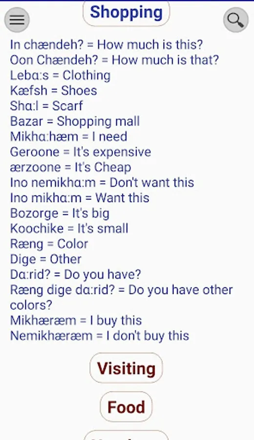 Well, here is your chance to learn phrases in different situations such as in shopping or in restaurants. You can learn how to count in Farsi and read Farsi numbers.