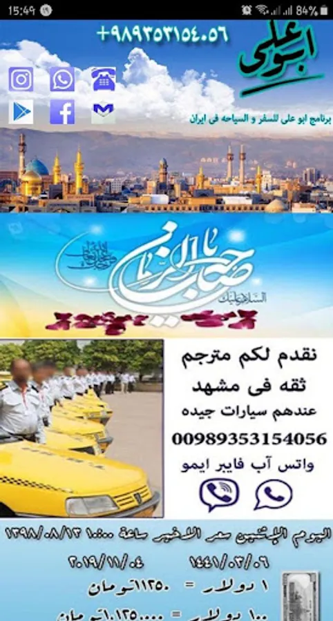 يمكنكم التواصل باللغة العربية مع المرشد والدليل والمنسق (ابو علي) في ايران (مشهد المقدسة) لاغراض العلاج والتجميل والسياحة