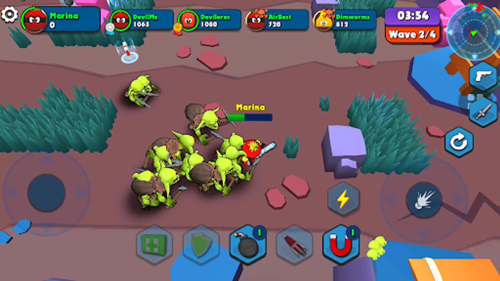 Use numerous weapons wisely: guns, bombs, rockets, and many others are at your disposal. Develop your unbeatable strategy and start defeating your enemies and other players!