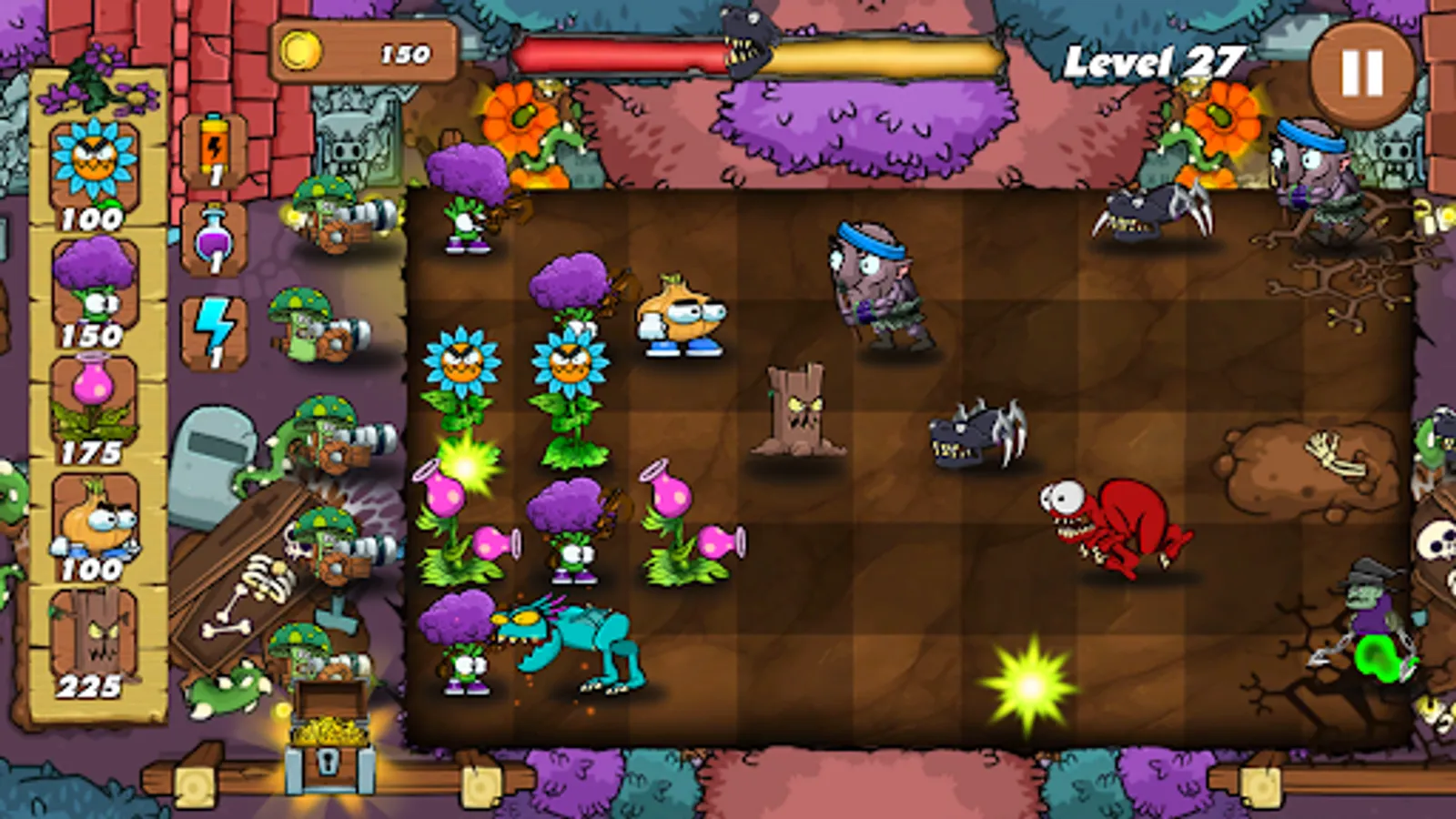 The Green Warriors are needed to protect their home again! Goblins have invaded the Earth but this time they can create monsters and attack with a double force! Plants are ready to fight back with all their might! 11 brave warriors: Carnivorous plant, Canon plant, Broccoli, Onion, Mushroom, Dual Canon plant, Pepper, Carrot, Radish, Tree trunk, and Sunflower are ready to save the Earth from the evil.