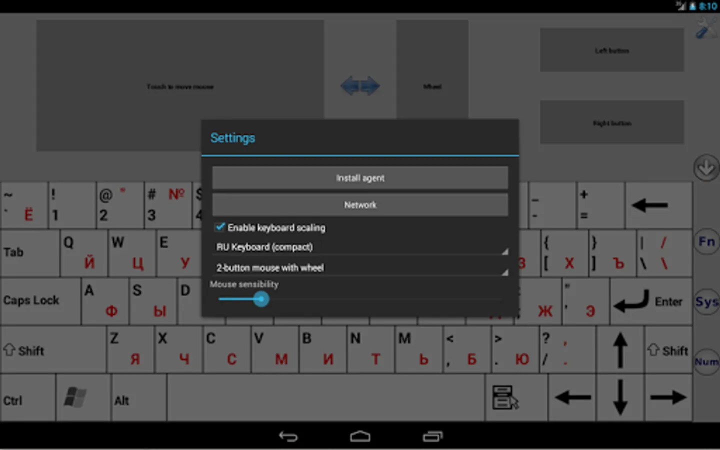 Remote Keyboard consists of android application itself and agent (embedded to android app) installed on PC (Linux, Mac or Windows) you want to control.