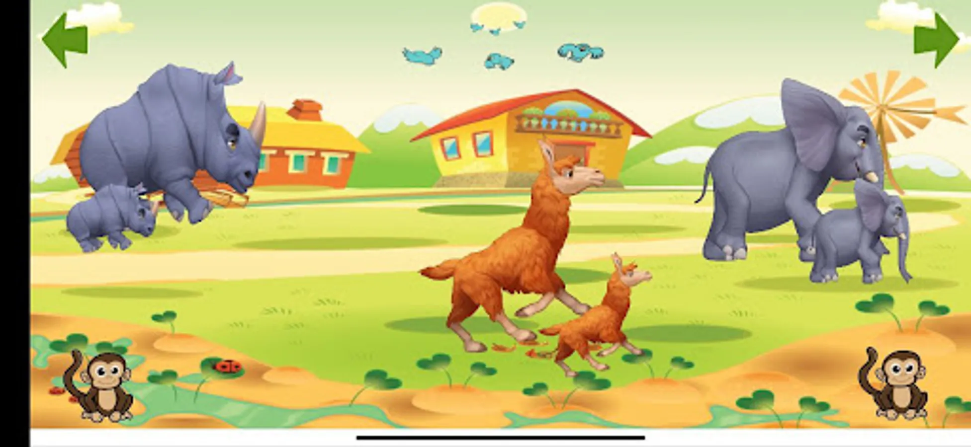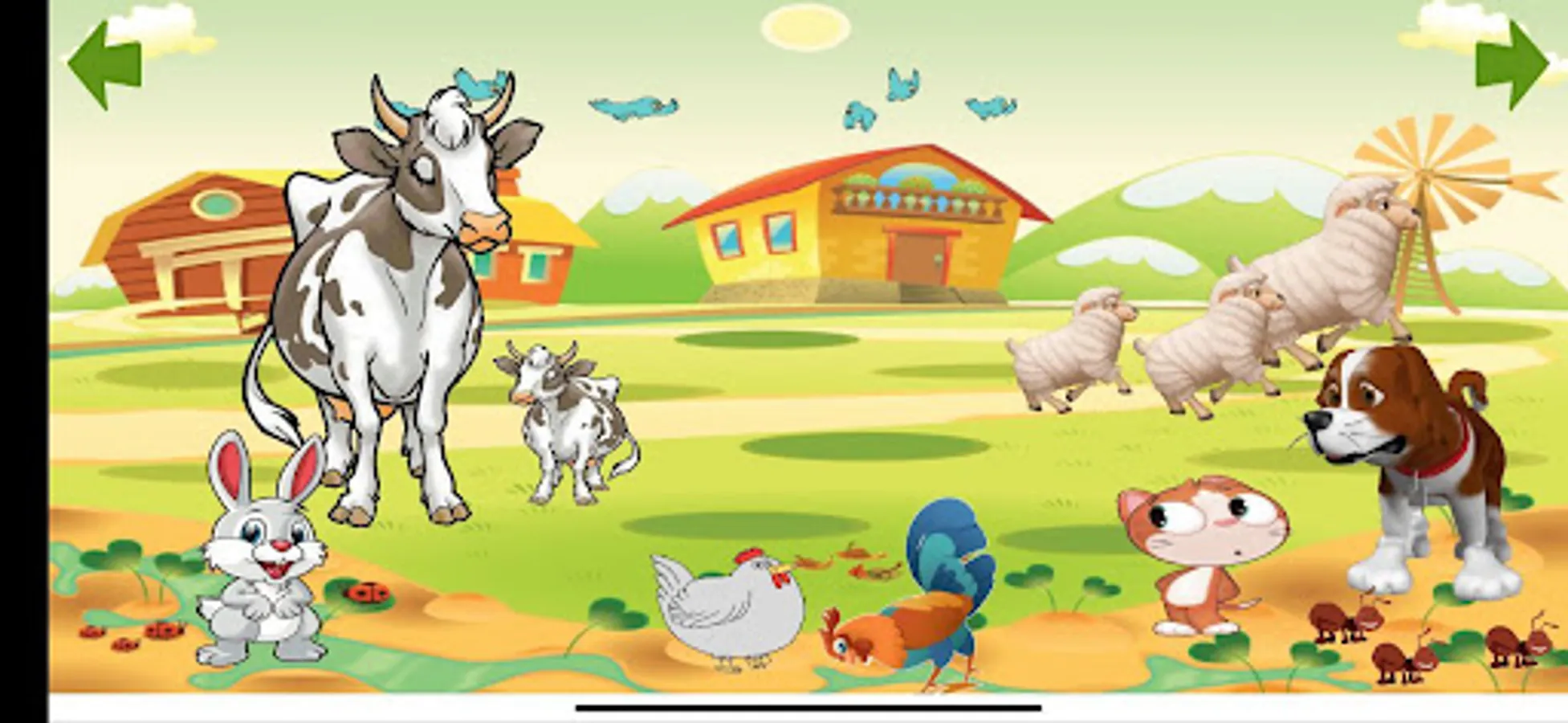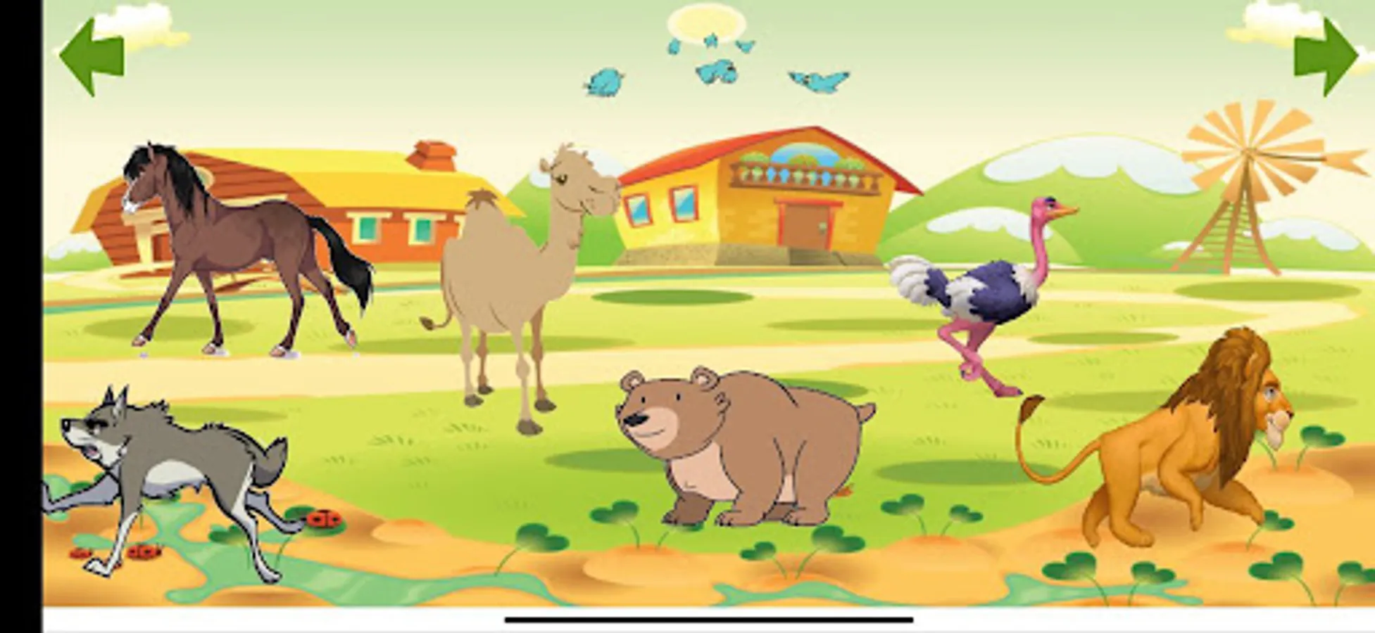 This fun and educational game is packed with three different categories: wild animals, farm friends, and exotic creatures. In each category, you will encounter and recognize animals with their real sounds.