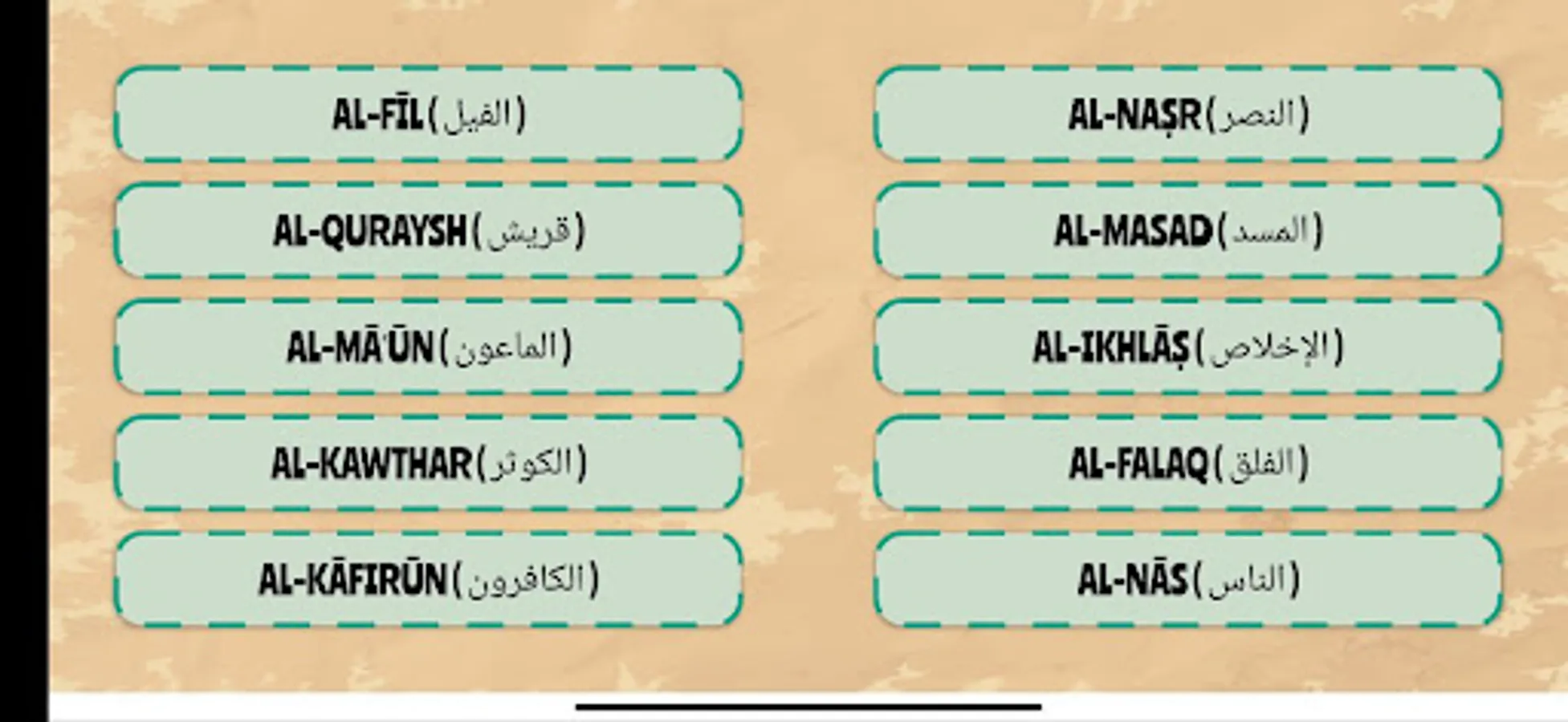 Listen the Quran Surahs : In this area , we have some short the Quran Surahs. So you can listen them like listening mp3.