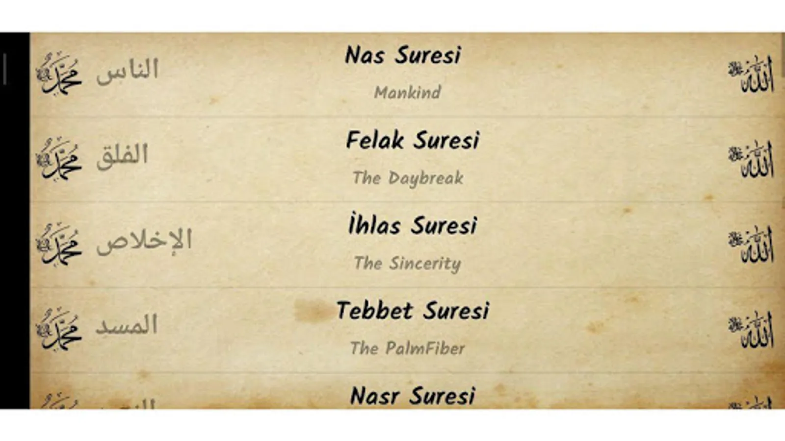 Quran Surahs Areas: We prepared two different areas for Quran Surahs.