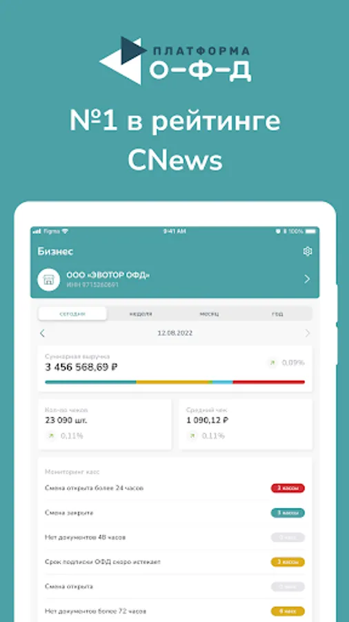 The application of the fiscal data operator "OFD Platform" is a tool for controlling cash transactions and revenue analytics, which allows you to remotely track sales performance at any time.
