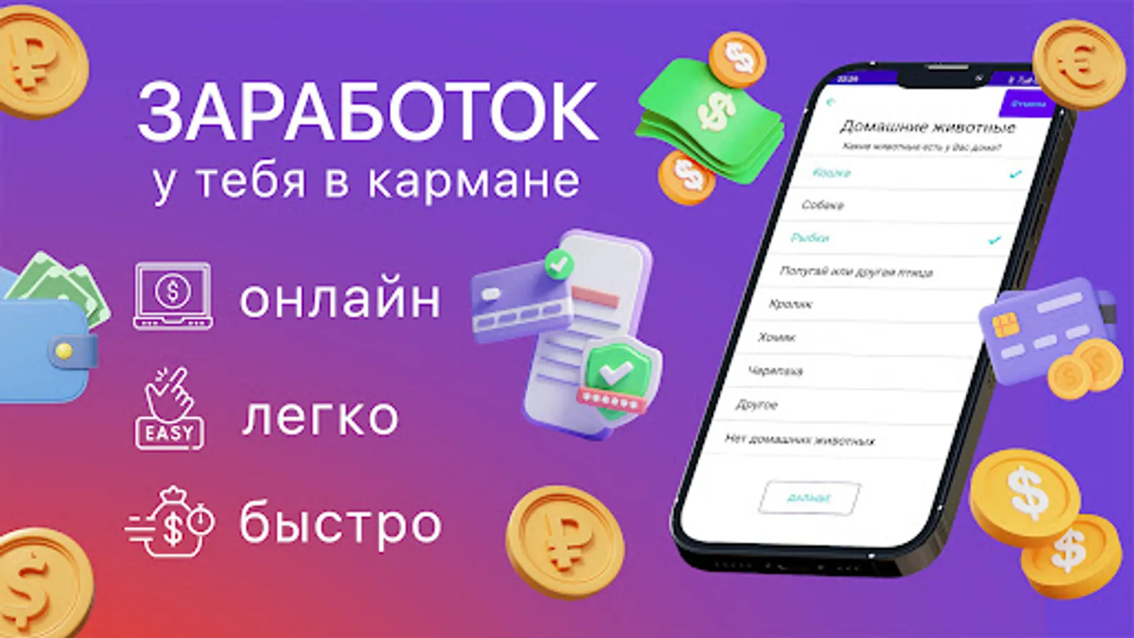 📲 By installing the Paid surveys earn money application, you will be asked to fill out a starter questionnaire, the completion of which will help classify you as a consumer. It will take a little time for the system to determine which surveys are right for you. To earn more, it is recommended to periodically check the application for new tasks. Having successfully completed the survey, you can withdraw your earnings to your phone, card or qiwi after the survey customer confirms the correctness of filling out the questionnaires. As a rule, it takes up to 3 days.