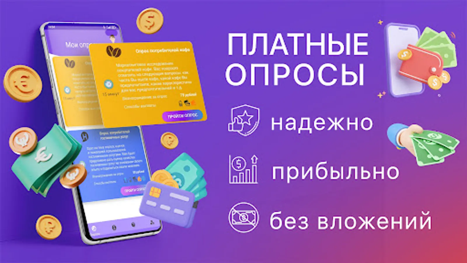 Earning money without investments on the phone is available to everyone! Paid surveys through an online application for making money is an easy part-time job that helps you get additional income without skills and abilities. This is a real way to replenish your wallet or qiwi account, even for schoolchildren and students. It is important for companies to know the opinion of consumers about goods and services, and they are ready to pay for it, which opens up an option for users to earn money. By participating in surveys, you help develop the market for goods and services, making your life as a consumer better, and at the same time you get mobile earnings on the Internet without investing in a phone.