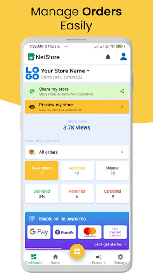 3. Get notification as soon as you get any new order along with the customer's name, address and verified mobile number.