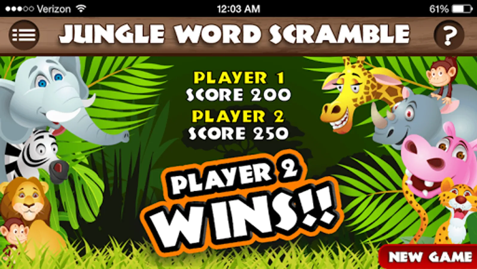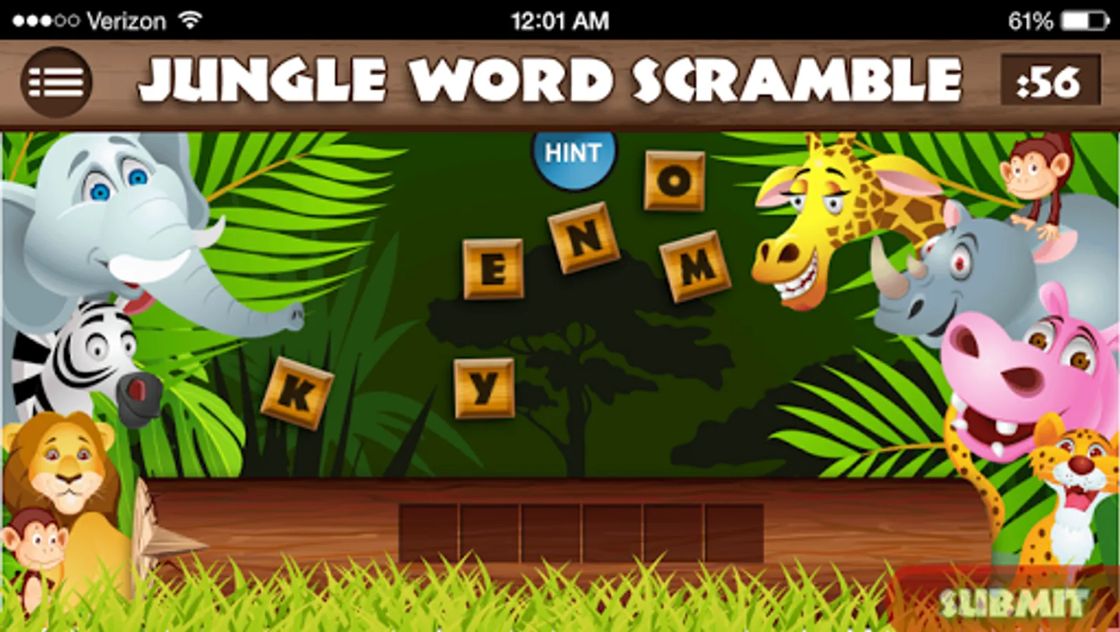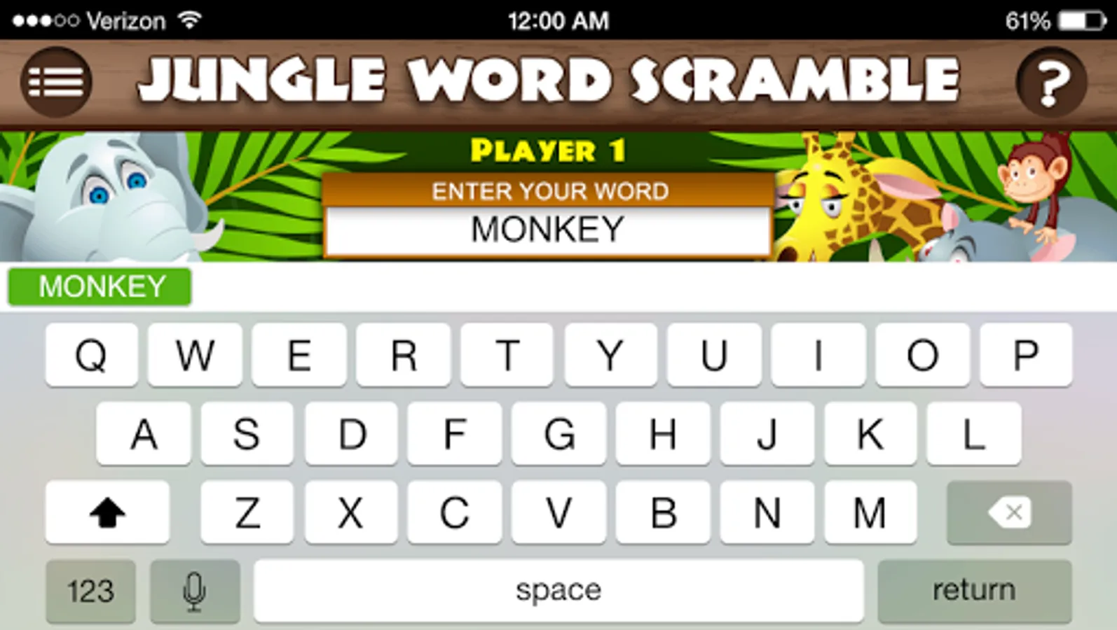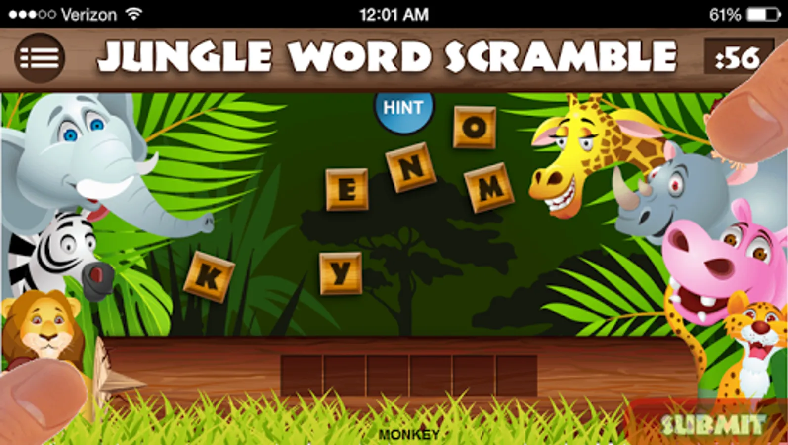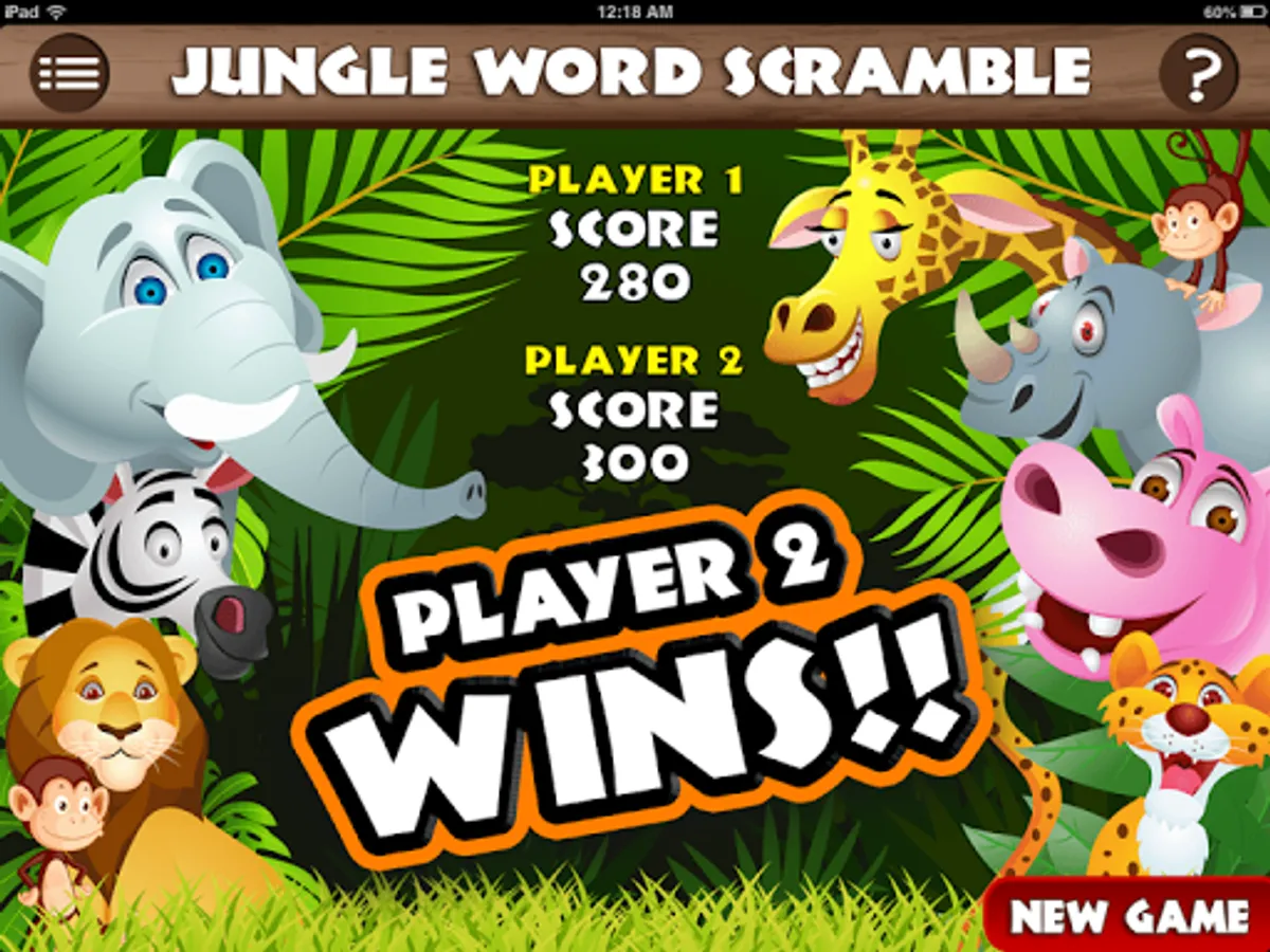 The app will transform, like magic, into an ordinary-looking trivia quiz called JUNGLE WORD SCRAMBLE. It will even appear as "Jungle Word Scramble" on your menu screen.