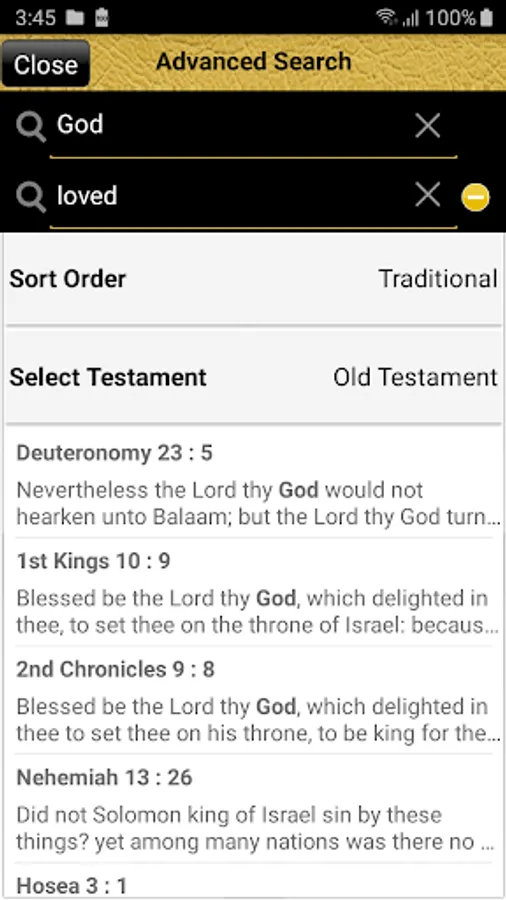 • Search: simple search to look for words or phrases; compound search allows search of any two words or phrase and returns the verse that contain both; search words are bolded in the results, sort traditional or alphabetical, filter on Old Testament, New Testament and Book of Mormon results