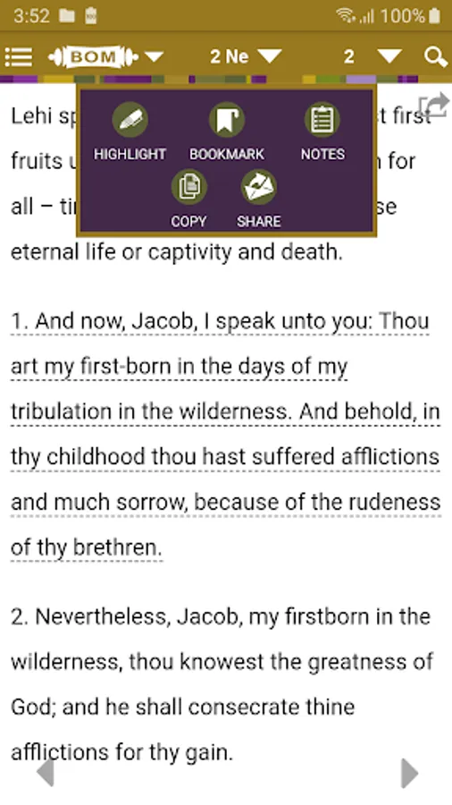 • Browse: browse through the scriptures by book and chapter; drop down menus make it easy to find any book and chapter easily
