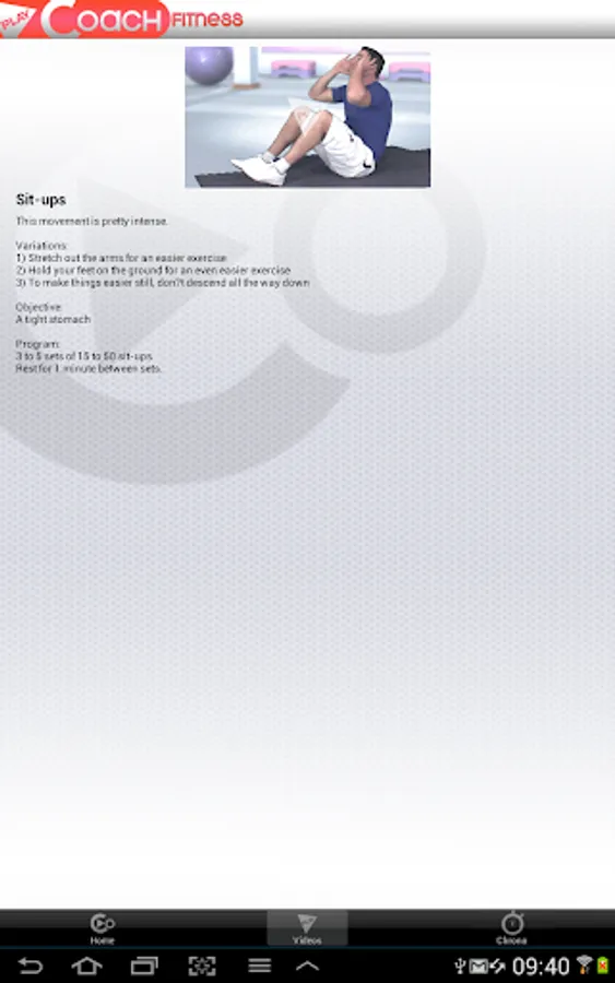 In each video, our coach explains in detail the movements to do with advice, execution and completion schedule.