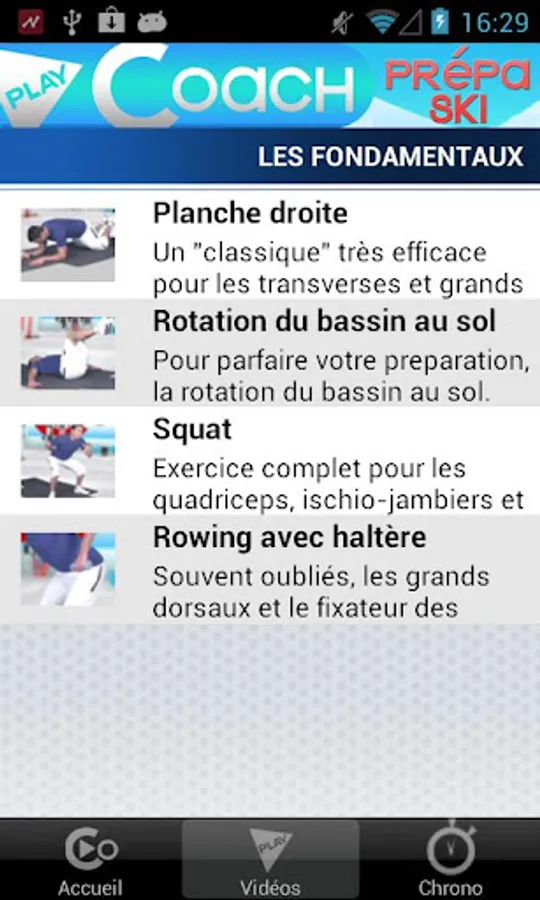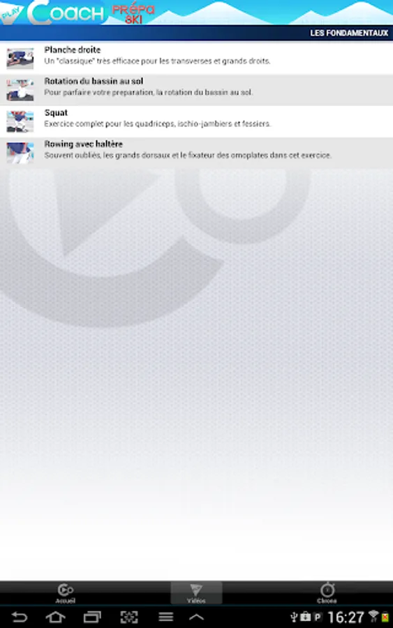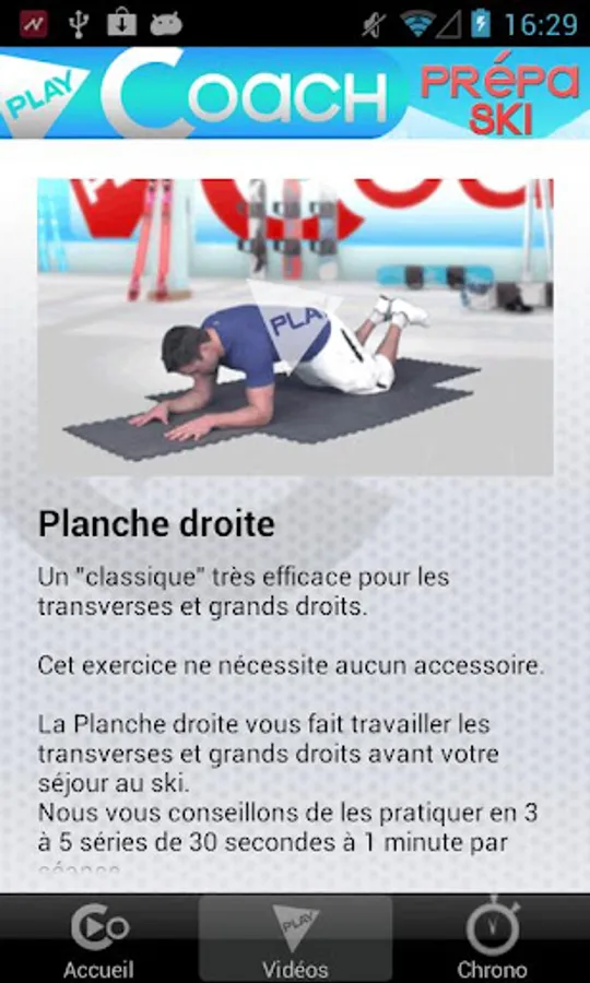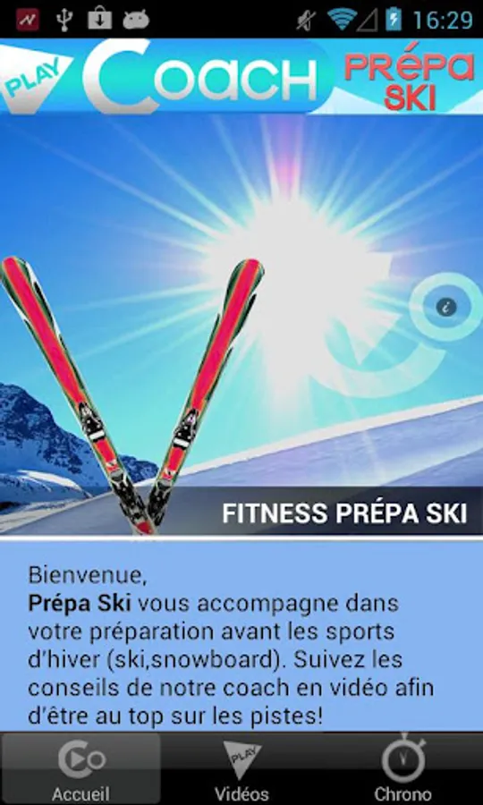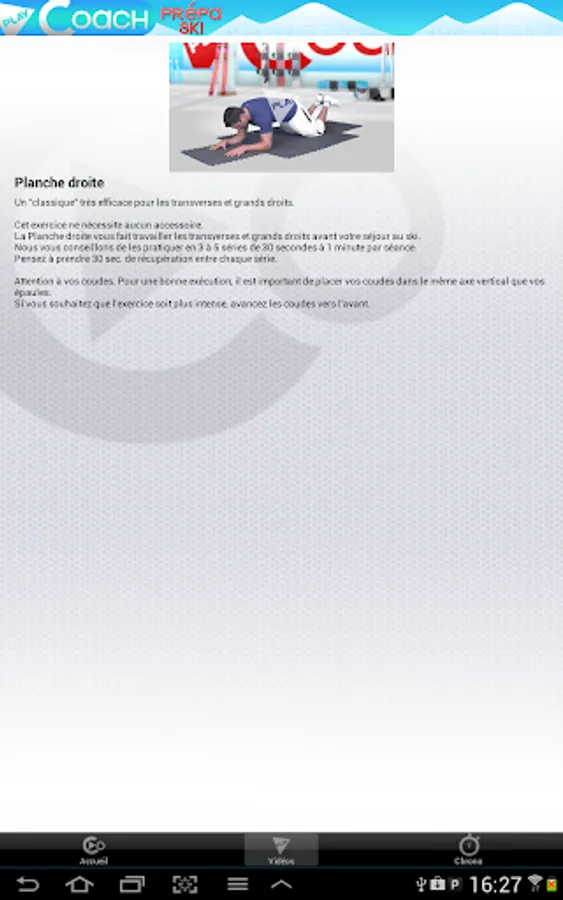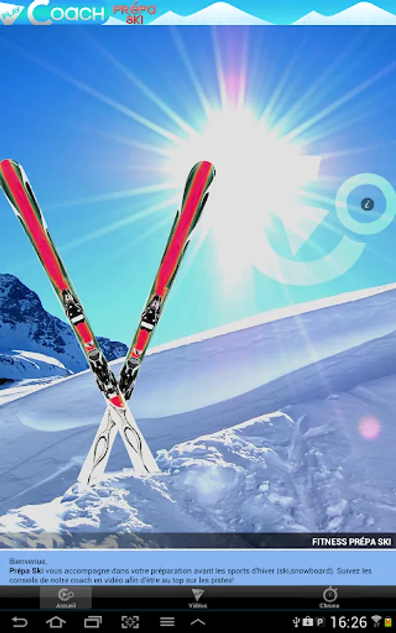 App offers fitness exercises video to practice before your departure. These exercises are aimed at all ages, beginners or advanced skiers.