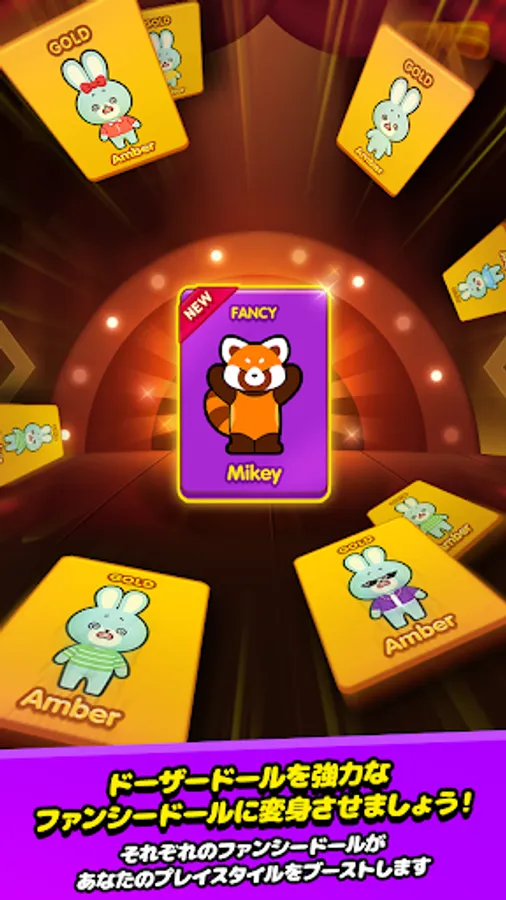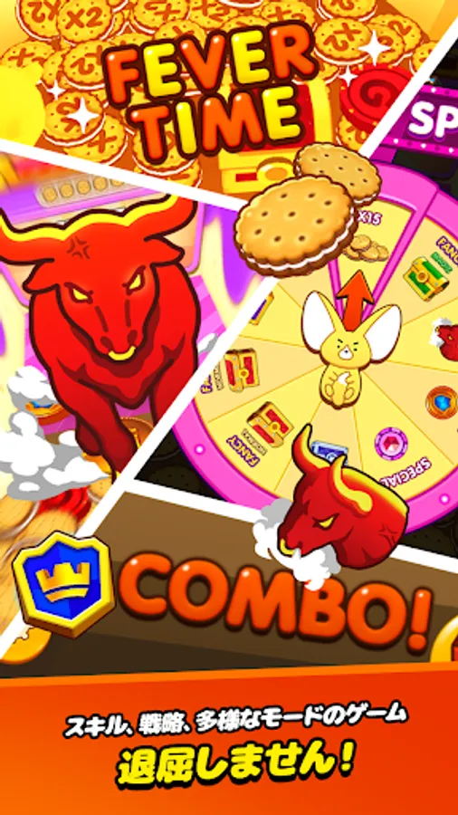 Collect cookie-shaped coins to fill the fever gauge and enable fever mode. Activate the bulldozer, spin the wheel and get big rewards! Quickly level up and collect rare dolls with a variety of booster coins to change and enhance your gameplay, including wall coins, giant coins and EXP coins.