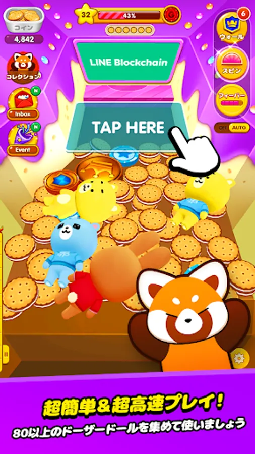 Based on the classic medal game, "CryptoDozer for LINE Blockchain" is an arcade game based on blockchain technology. Collect over 30 cute dolls and turn them into your own NFT! The collected dolls will be used as materials to make your own NFT through synthesis and strengthening. Each NFT has special effects to enhance gameplay! Collect cute dolls and collect unique NFTs! It's all yours!