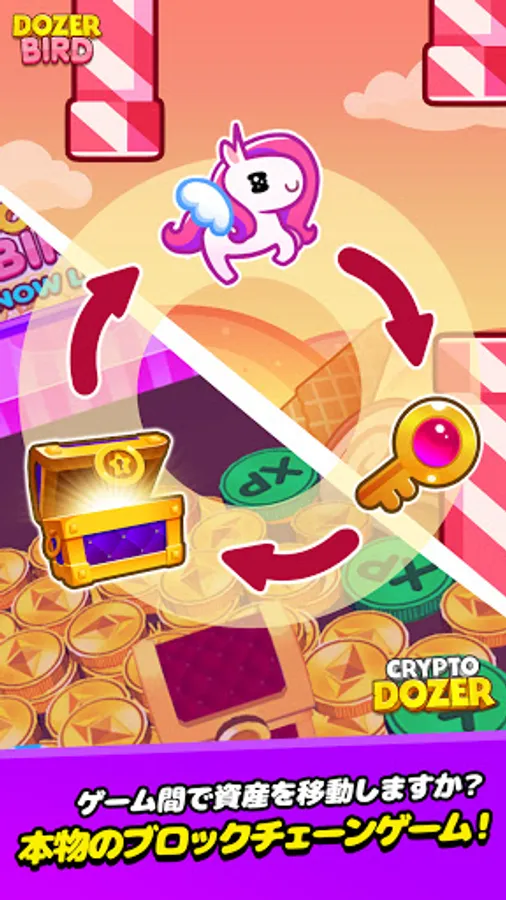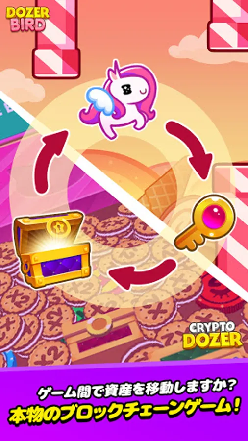 Play "Dozer Bird for LINE Blockchain" and collect the keys for "Crypto Dozer for LINE Blockchain"!