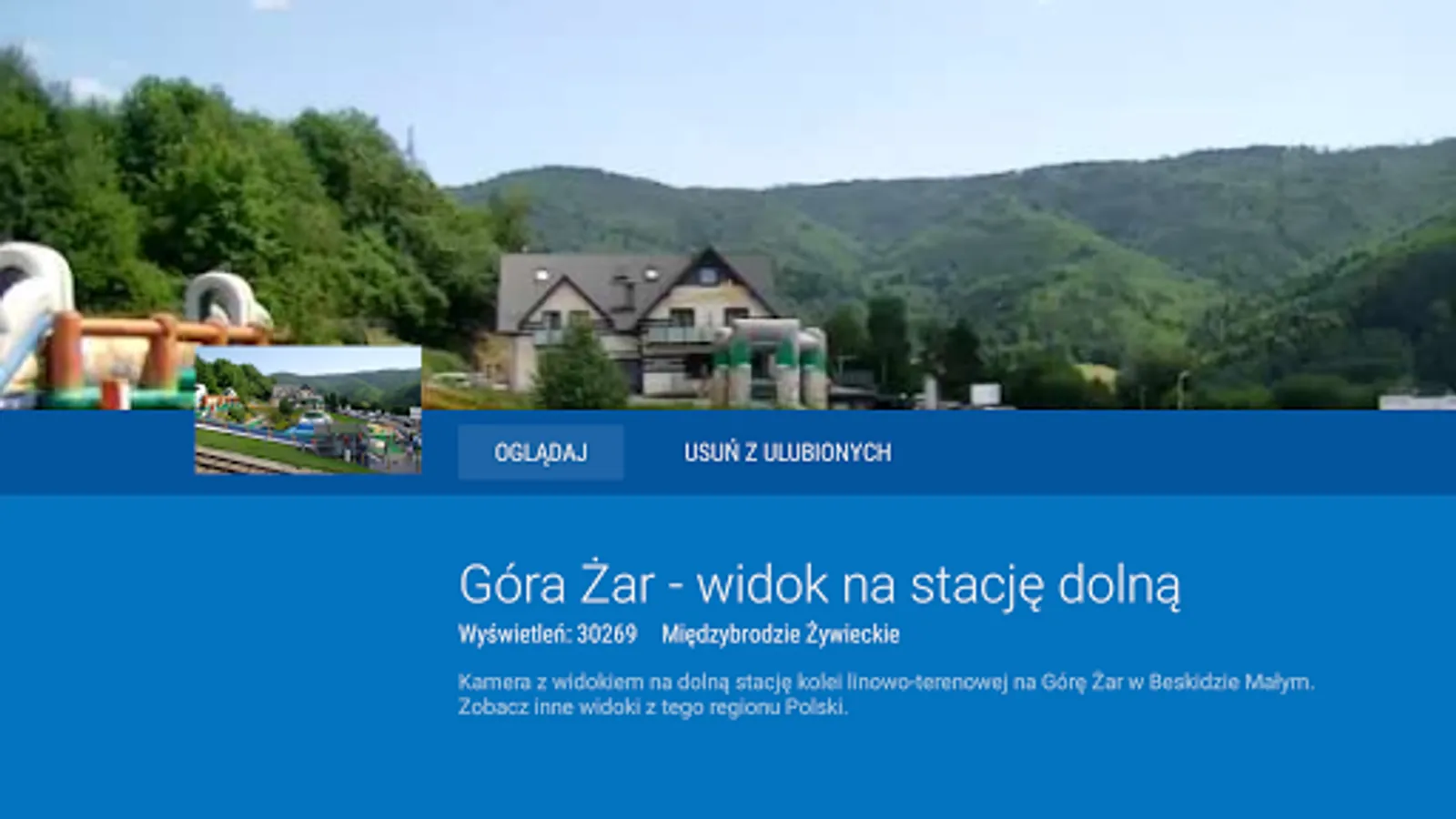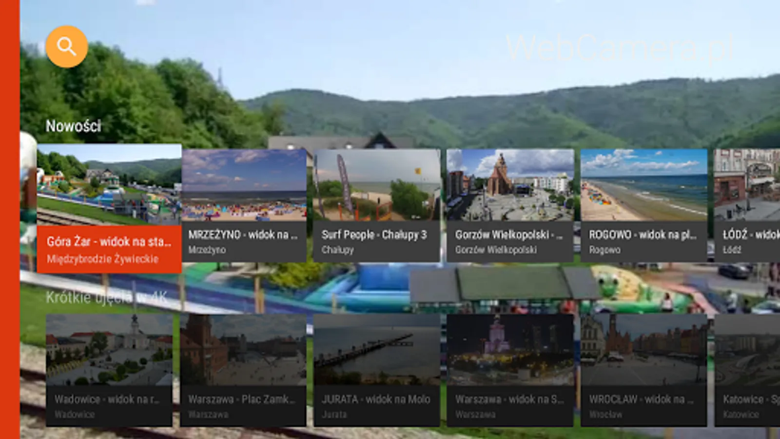 The application for Android TV gives access to weather cameras with live image from the portal WebCamera.pl.
