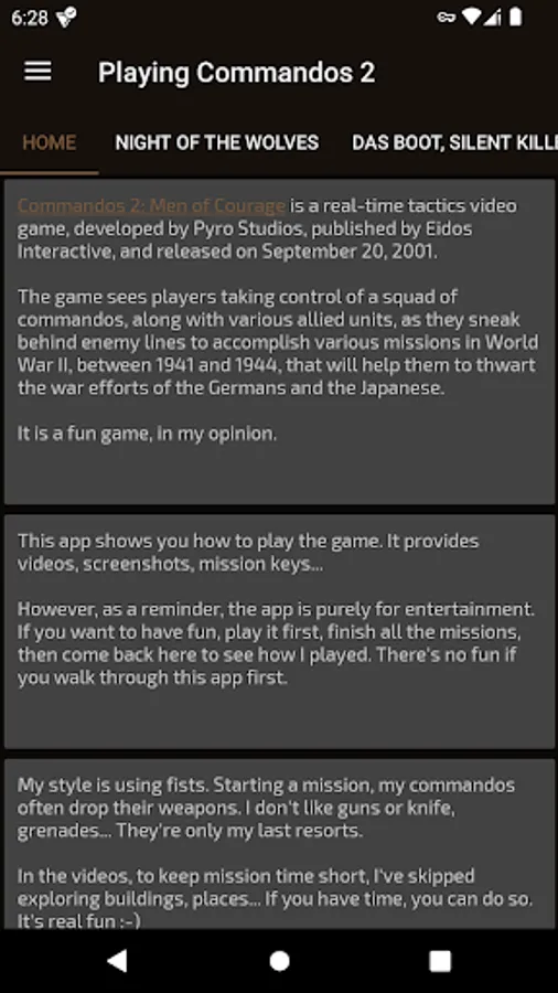 This app shows you how to play the game. It provides videos, screenshots, mission keys...