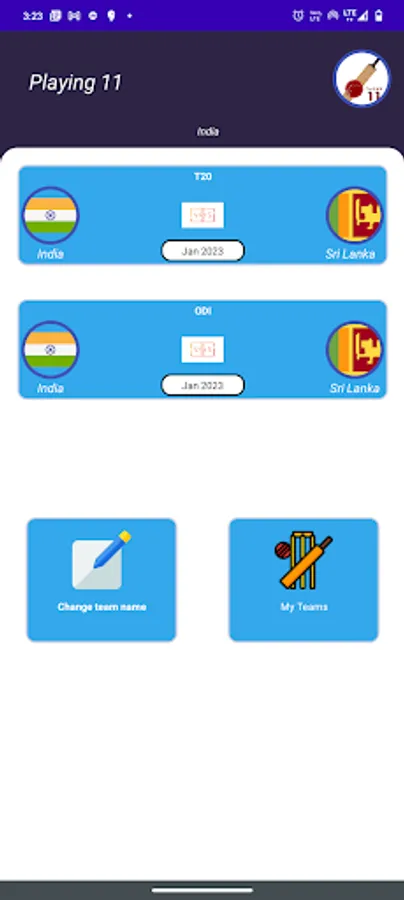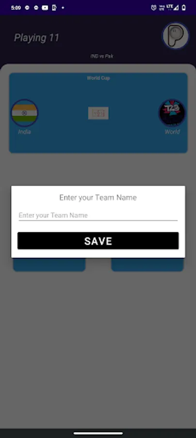 Here in this app, you can select your match from the list as: T20, ODIs, World Cup etc. Also you can write name of your own team.