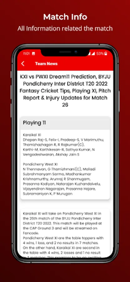 Everyone has a dream to get success in fantasy sports apps and Pro Team 11 help you to achieve your goal in terms of providing Team News, playing 11 and Predicted Dream Team after detail analysis.