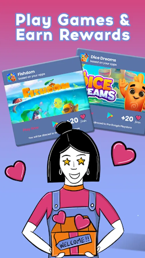 😃 Earn hearts by playing games. The more you play, the more hearts you get!