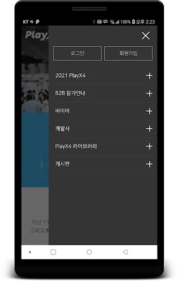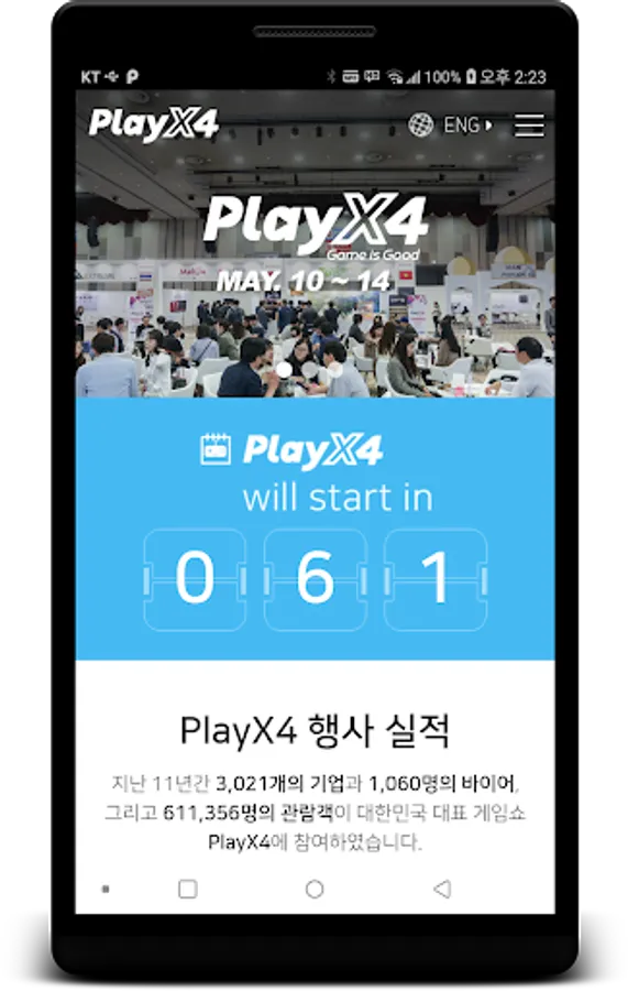 You can see various contents provided by PlayX4 such as event schedule information, participation application, business matching, and exhibitor library.