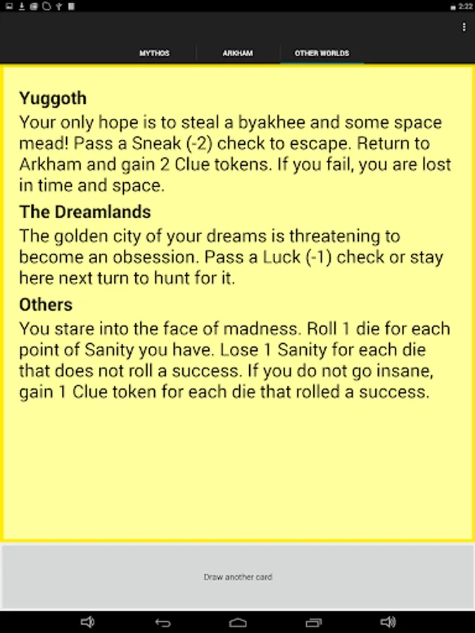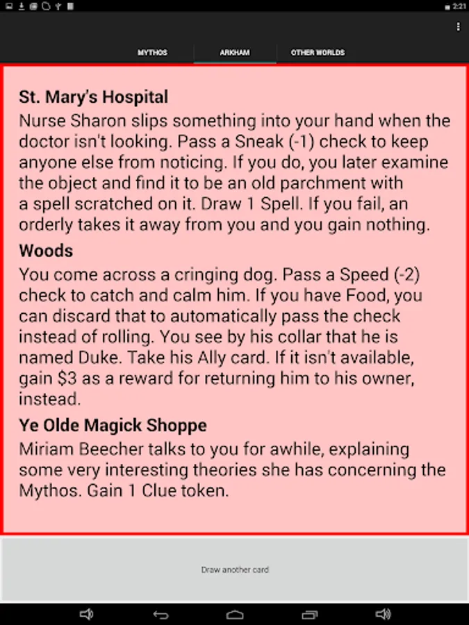Arkham Decks is a helper app for Arkham Horror, the board game set in Arkham, the fictional city created by H.P. Lovecraft, where the players fight desperately to survive the unmentionable horrors unleashed by Ancient Ones like Cthulhu, Azathoth, Nyarlathotep and other almost invincibe monsters.
