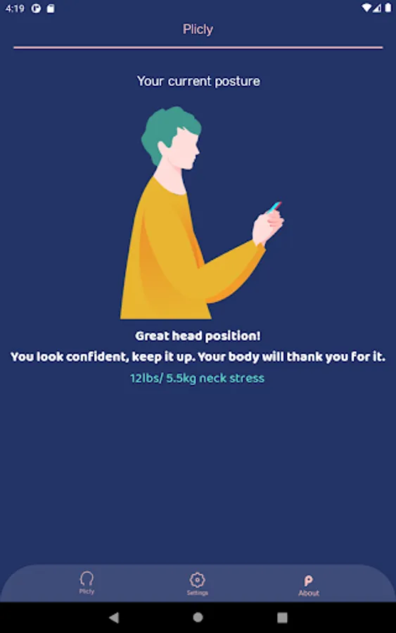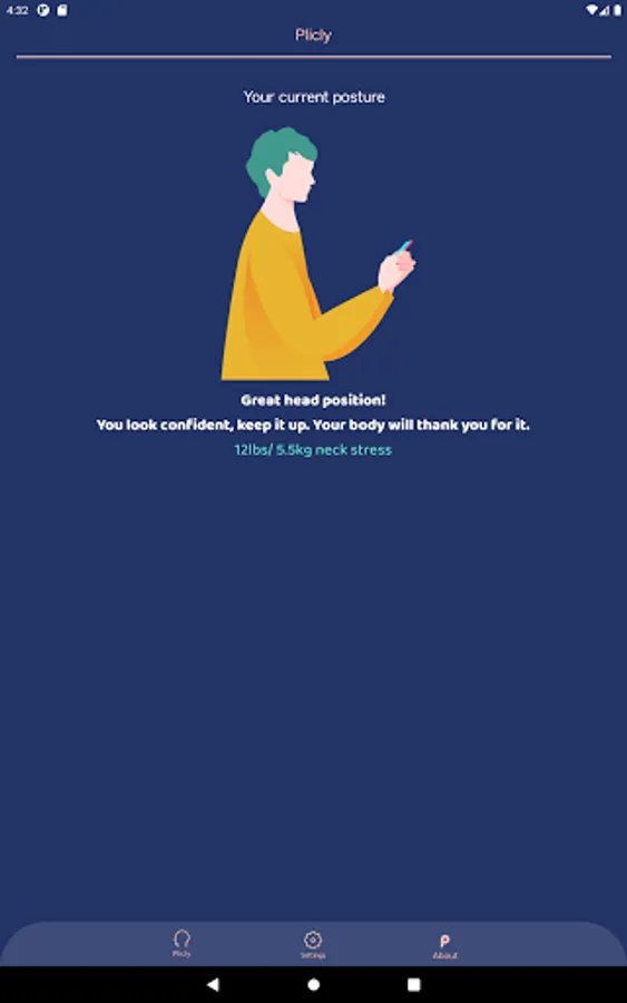 Plicly is the app that increases your well-being and decreases your neck and back pain with real-time posture coaching. On average, we spend more than 3 hours per day staring into our phone. This can negatively affect our physical and mental well-being. Plicly gently nudges you to correct your posture in real-time. Science has shown that a better posture can reduce pain, lead to more self-confidence and even make you appear more attractive.