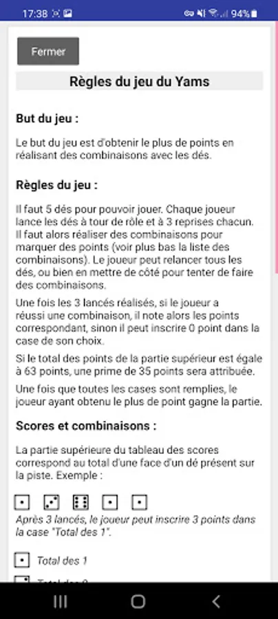 Yams is a dice game, you have to succeed in making certain combinations to score as many points as possible.