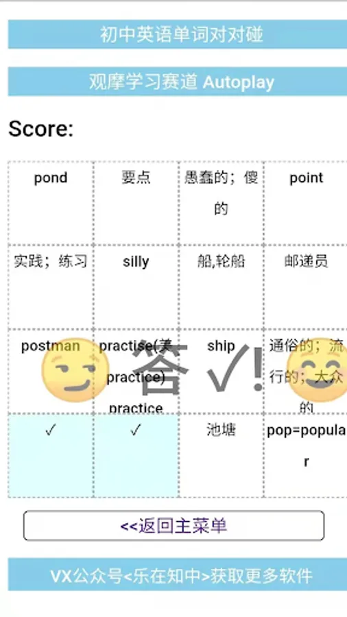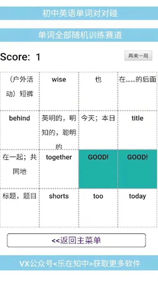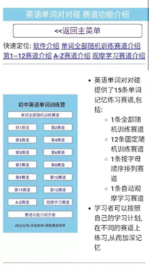 3. Junior high school English word pairing provides 15 word memory practice tracks, including:
