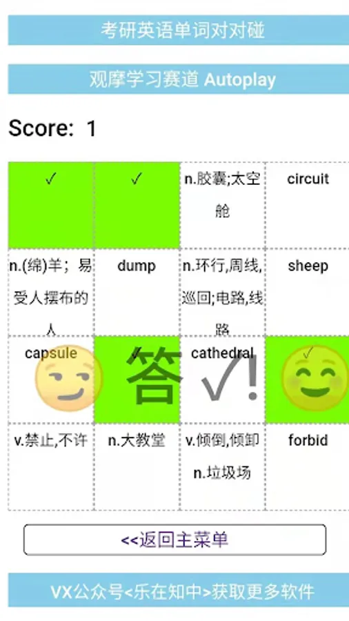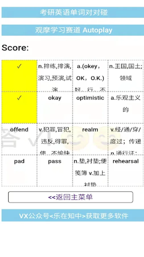 3. Postgraduate English word pairing provides 15 word memory practice tracks, including: