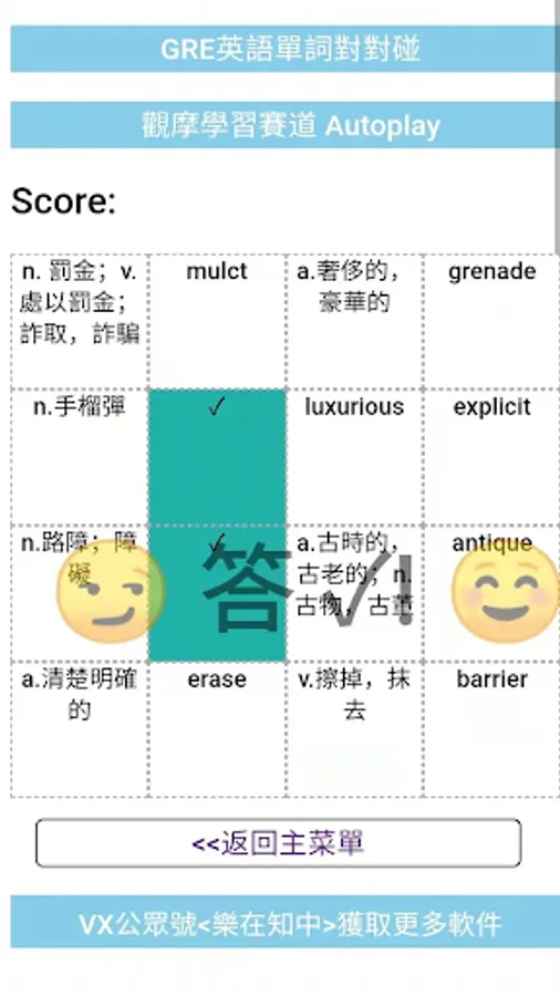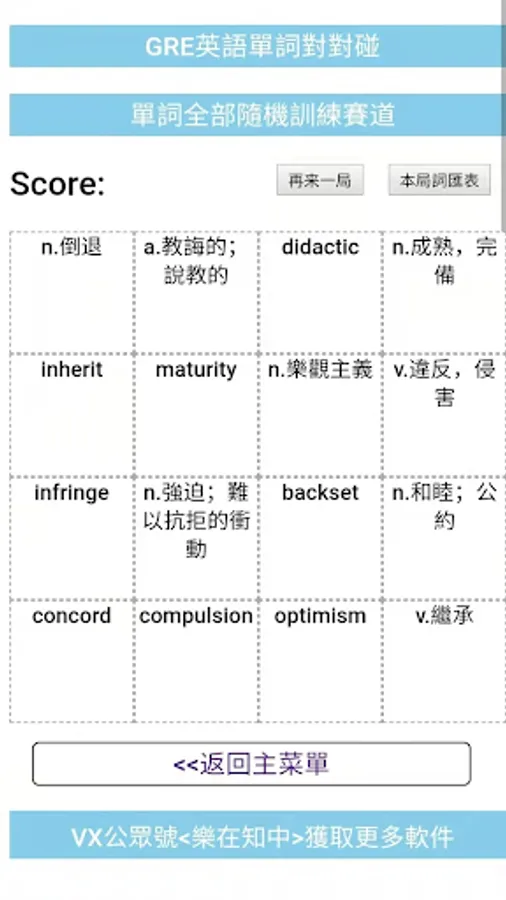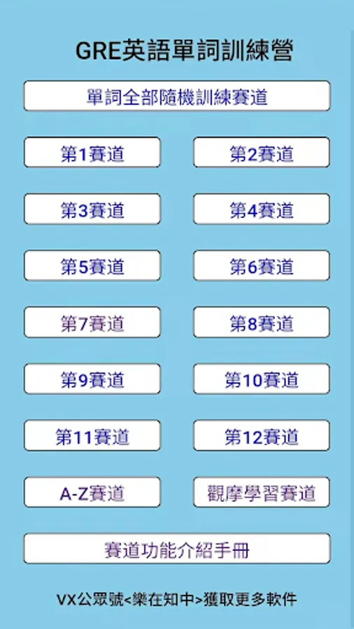 3.GRE English word pairing provides 15 word memory practice tracks, including: