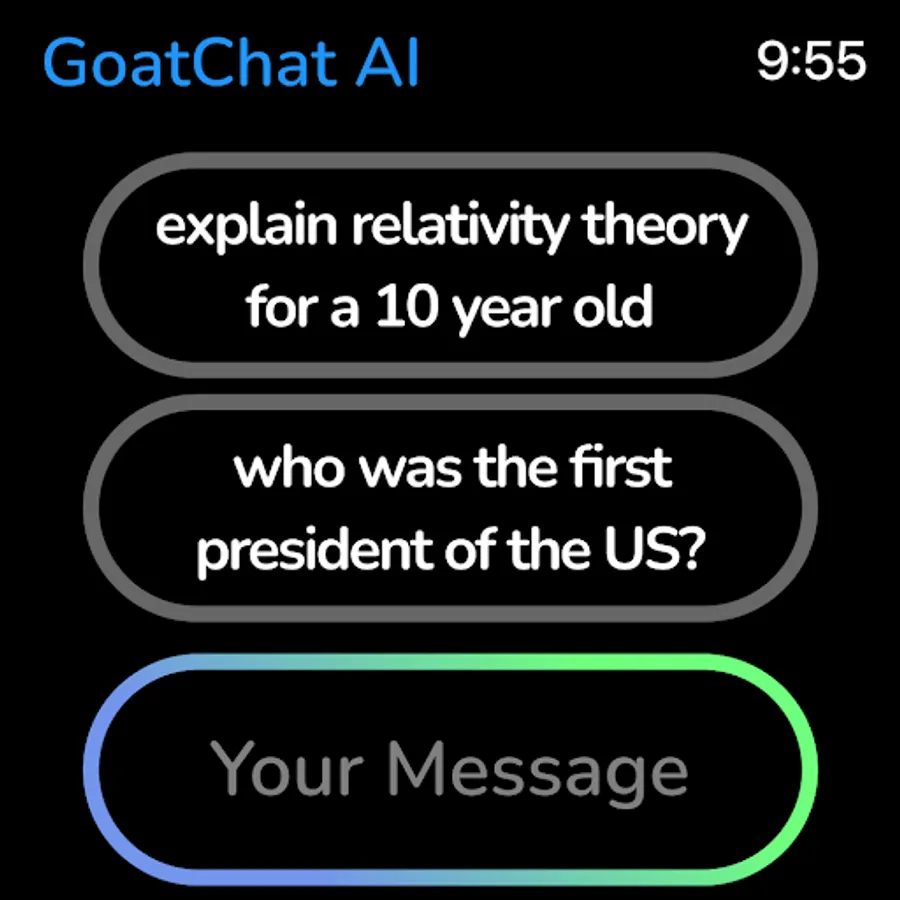 GoatChat is a revolutionary AI chatbot powered by ChatGPT and GPT-3. From writing stories, essays, and tweets to answering all your questions, GoatChat can do it all!