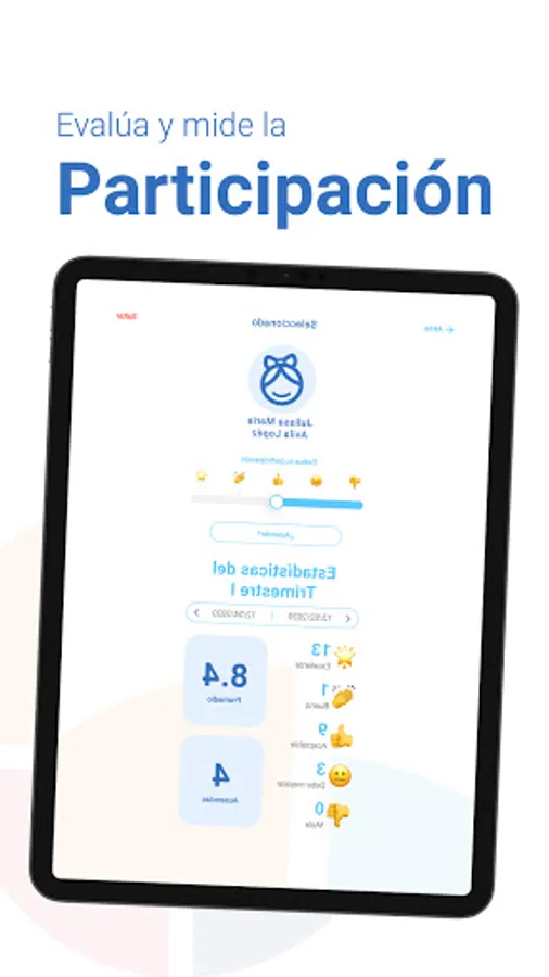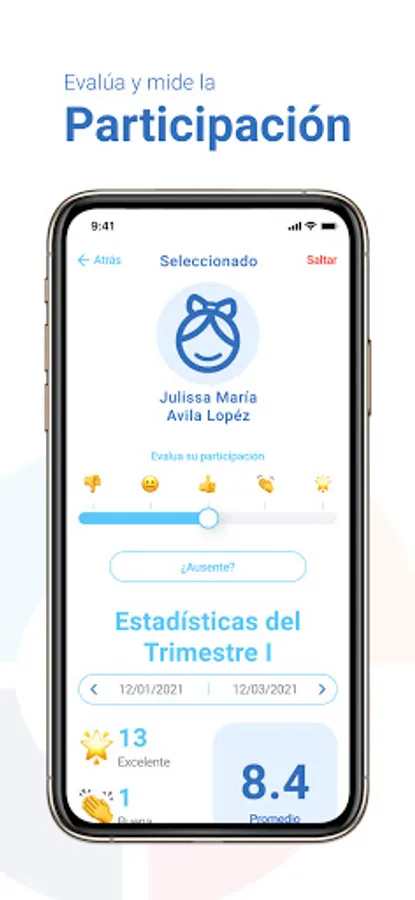 Create your schedule in e-school, enter the application, choose your class group and evaluate the participation of your students.