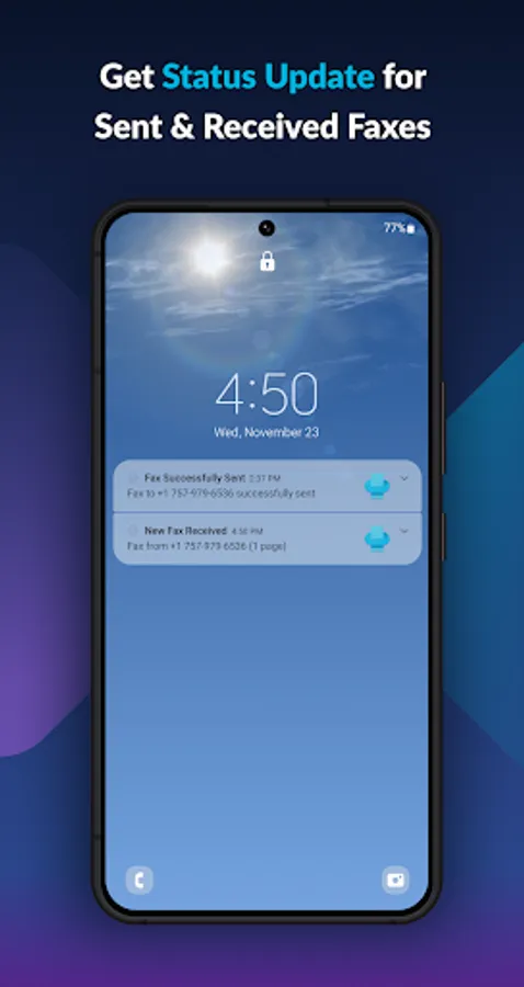 Receive fax in your phone: You can get a dedicated fax number from over 40 countries to receive fax online on your Android phone. You will be notified with a push notification when there is new fax in your inbox.