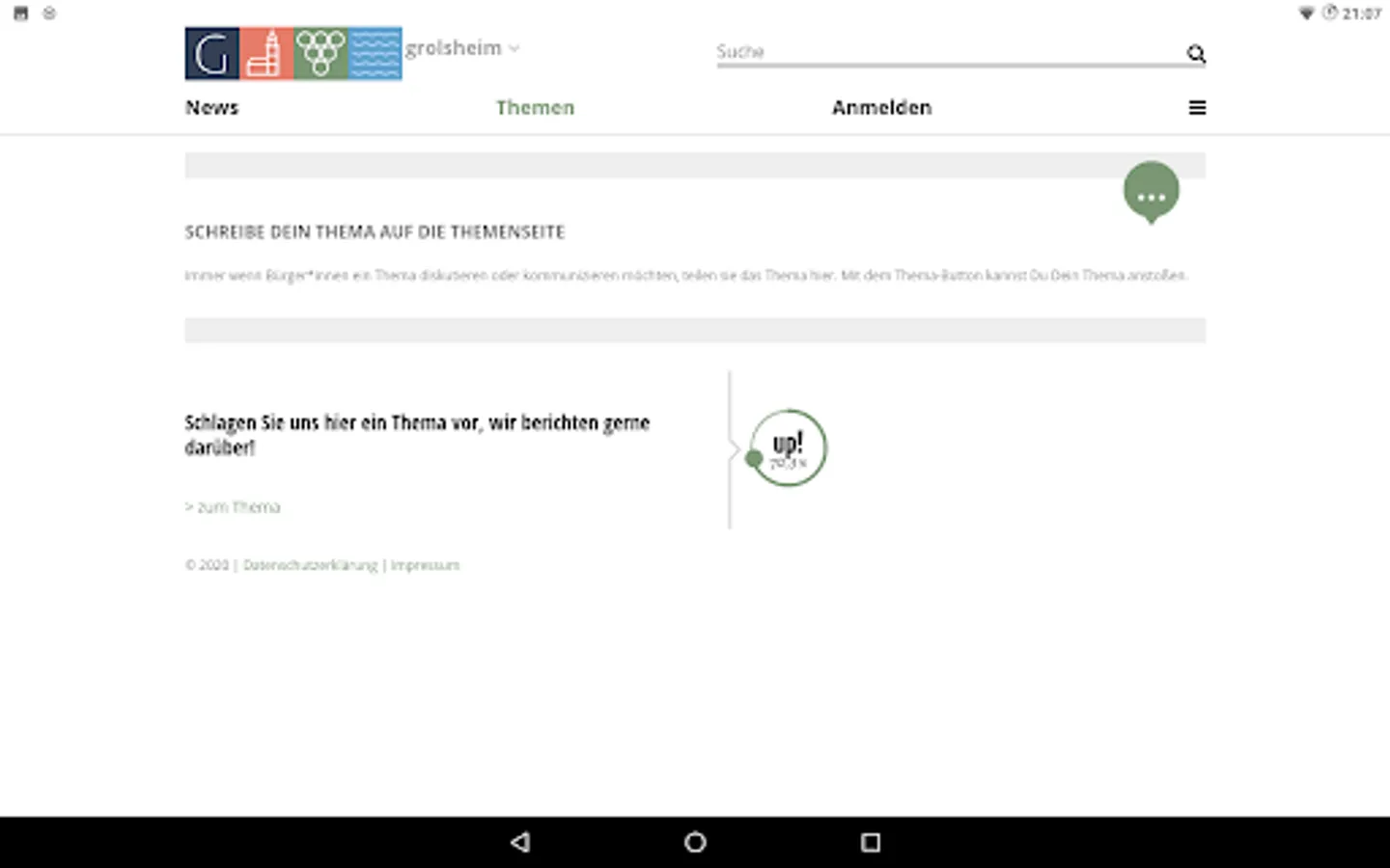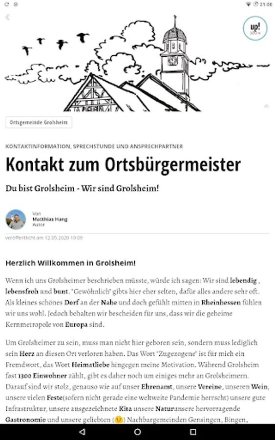 Our communication platform for everything to do with the community. Be informed about what is going on in our community. Local mayors also inform associations and interest groups. But you too are challenged: Put topics in the room that interest you. The platform is operated by a regional IT company from Mainz, which guarantees German data protection standards.