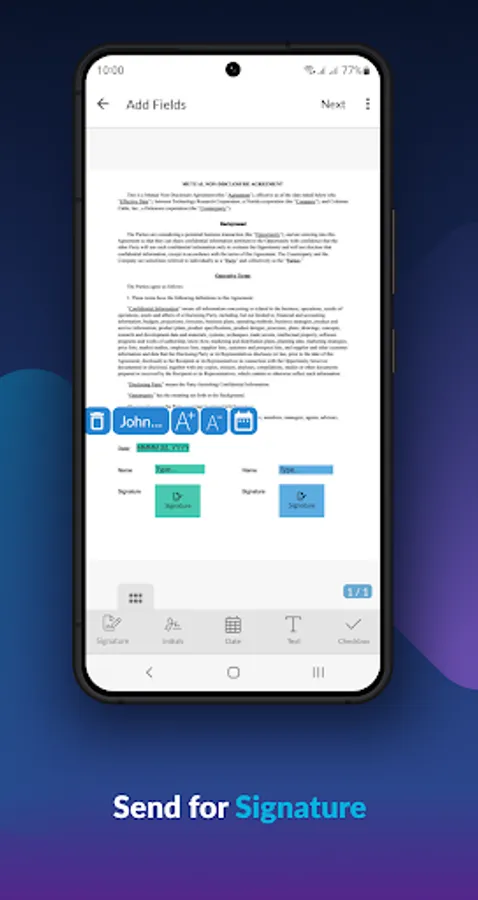 You can sign PDF docs, contracts, leases, NDAs, agreements, and pretty much every type of legal document without going through a complicated process. Download SIGN.PLUS for free on your Android device, scan/import the document you wish to sign/be signed electronically and esign it yourself or send it for signature.