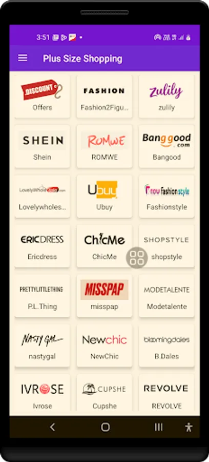 Plus Size Shopping app is a collection of popular shopping websites online from where you can purchase trending Plus Size clothing.