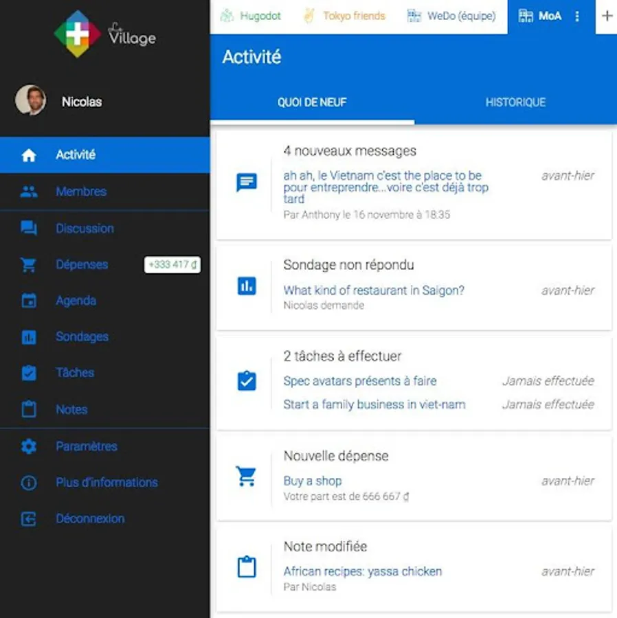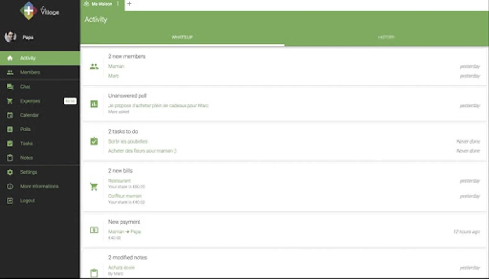 Dans chacune de vos "maisons", vous avez un chat, des todo list, agenda, sondages, dépenses, et notes, et bientôt bien plus encore pour tout faire en un seul endroit, ensemble!