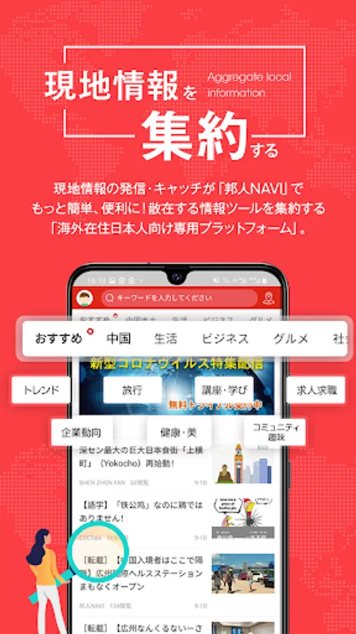 "Japanese NAVI" is a local information portal app and participatory interactive media for Japanese living overseas. You can freely send and catch all kinds of content such as text, voice, and video anytime, anywhere!