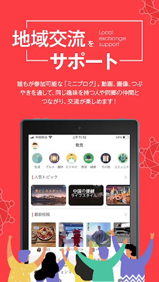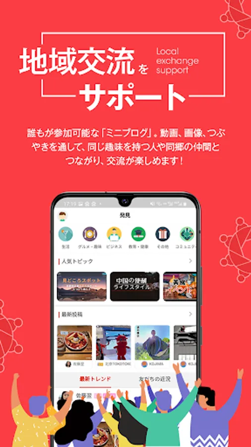 A "miniblog" that anyone can participate in. Through videos, images, and tweets, you can connect and interact with people who have the same hobbies and friends in your hometown!