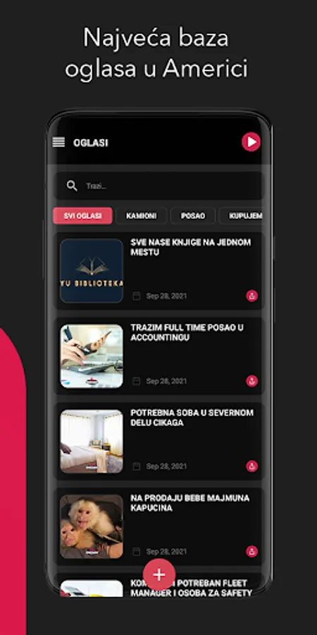 - OGLASI - ukoliko tražite stan, cimera, posao...posetite najveću bazu oglasa u Čikagu. Dodavanje oglasa nikada nije bilo jednostavnije sa obzirom da smo u listi OGLASI. u desnom donjem uglu ekrana, dodali plus dugme za dodavanje oglasa.
