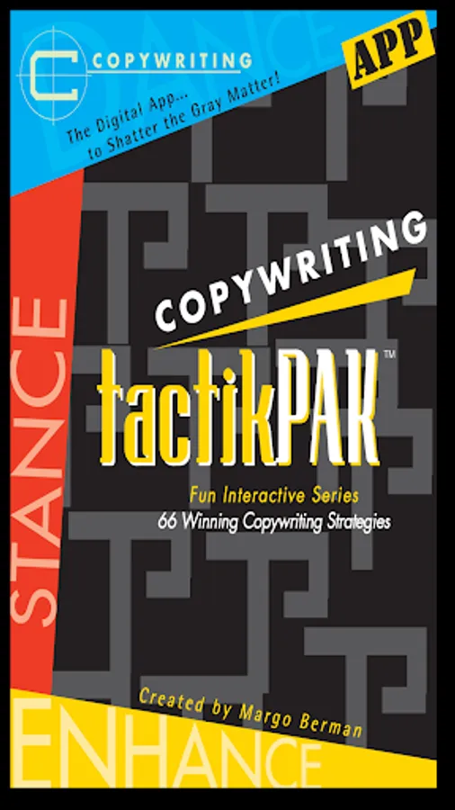 Each one of the tactikPAK™ apps examines a specific principle. Every principle has a matching acronym. For example, in Copywriting, G-R-A-S-P reminds you to understand and then incorporate consumer research. Use the information to guide the creative solution. This will help you develop an on-target and on-strategy message.