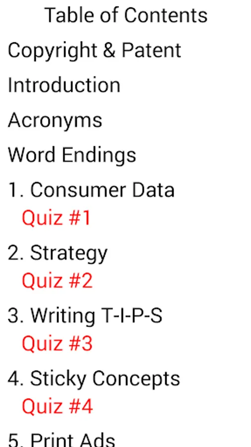 Focus your attention on the key points as you go through the modules, acronym by acronym. Identical word endings unify that module. For instance, Copywriting has "ance" at the end of each key word. You’ll find the interactive quizzes are fun to do. And they’ll make it easy to master each course in a flash!