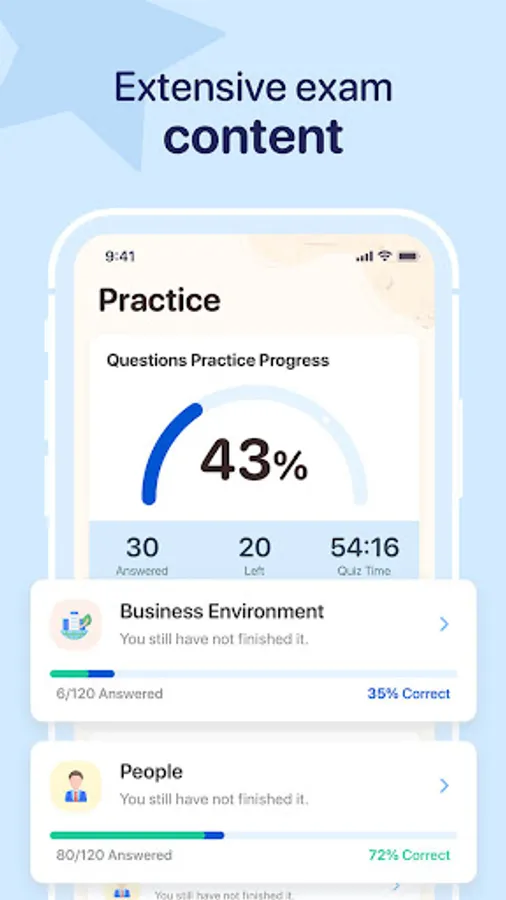 - Specialized practice by content area, with the flexibility to switch between them at any time