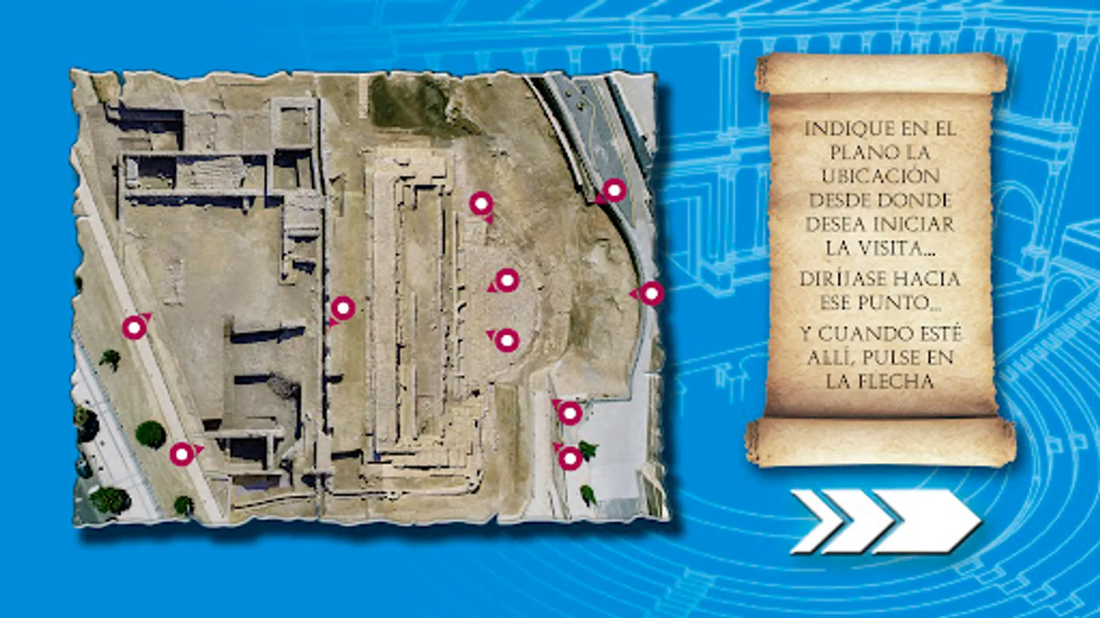 • If you are in the real environment of the theater, the application will offer you different points located in its vicinity, from which you will be able to contemplate and tour the virtual reconstruction right where it was originally, anchored on the remains of the site itself.