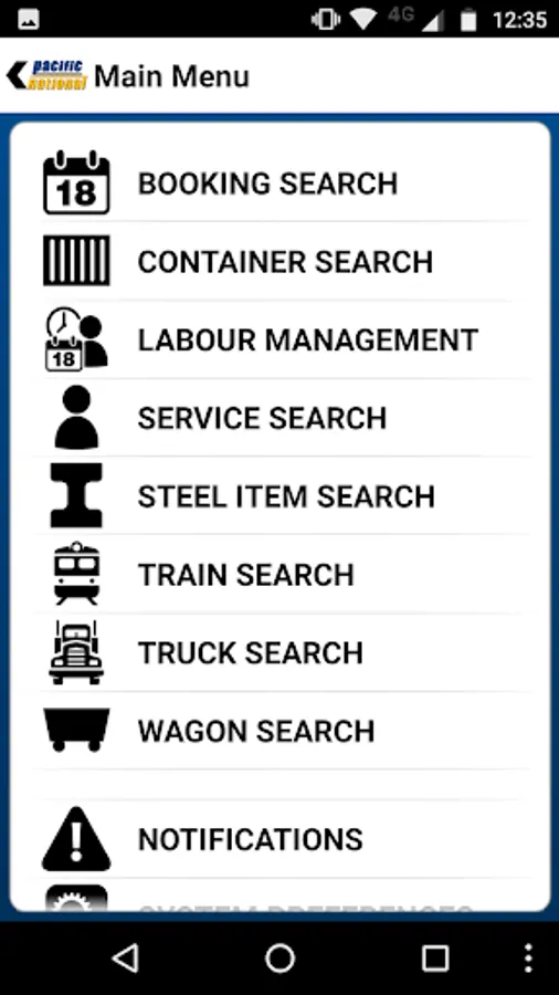 Pacific National’s container, wagon and train tracking for mobile devices.