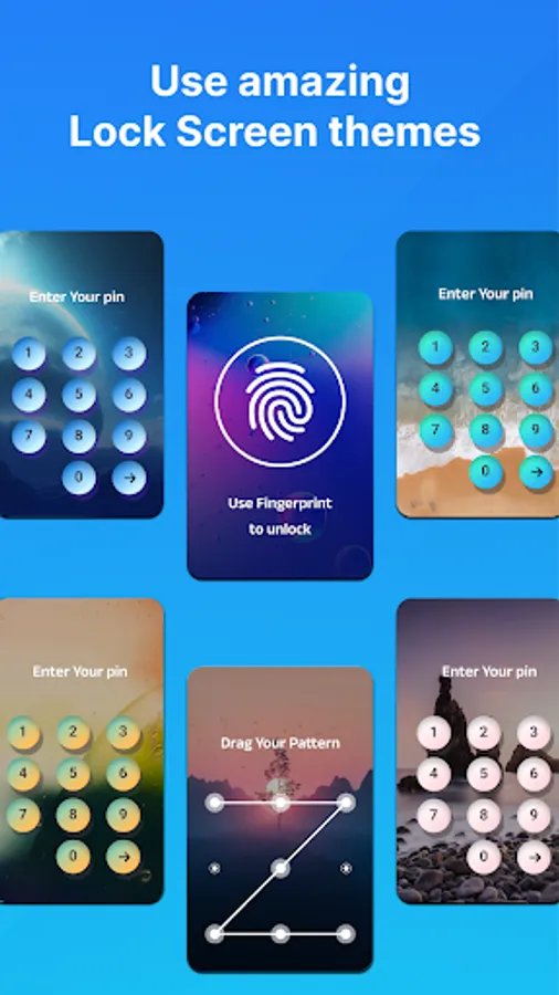 The fingerprint lock- app lock lets you choose your password page theme as per your interest. Once you choose any theme it will be applied to all the modes PIN, Pattern, and Fingerprint for AppLock.