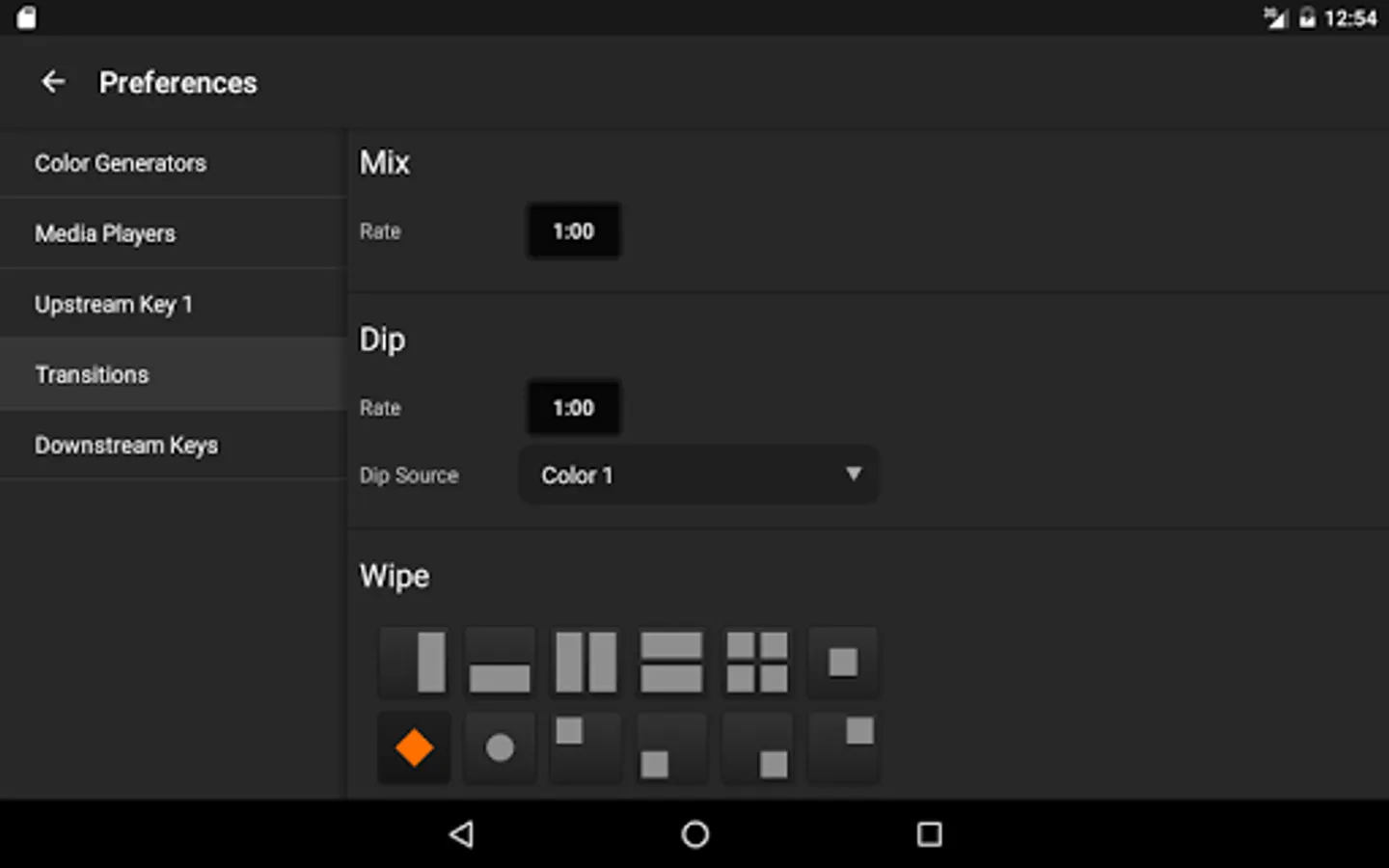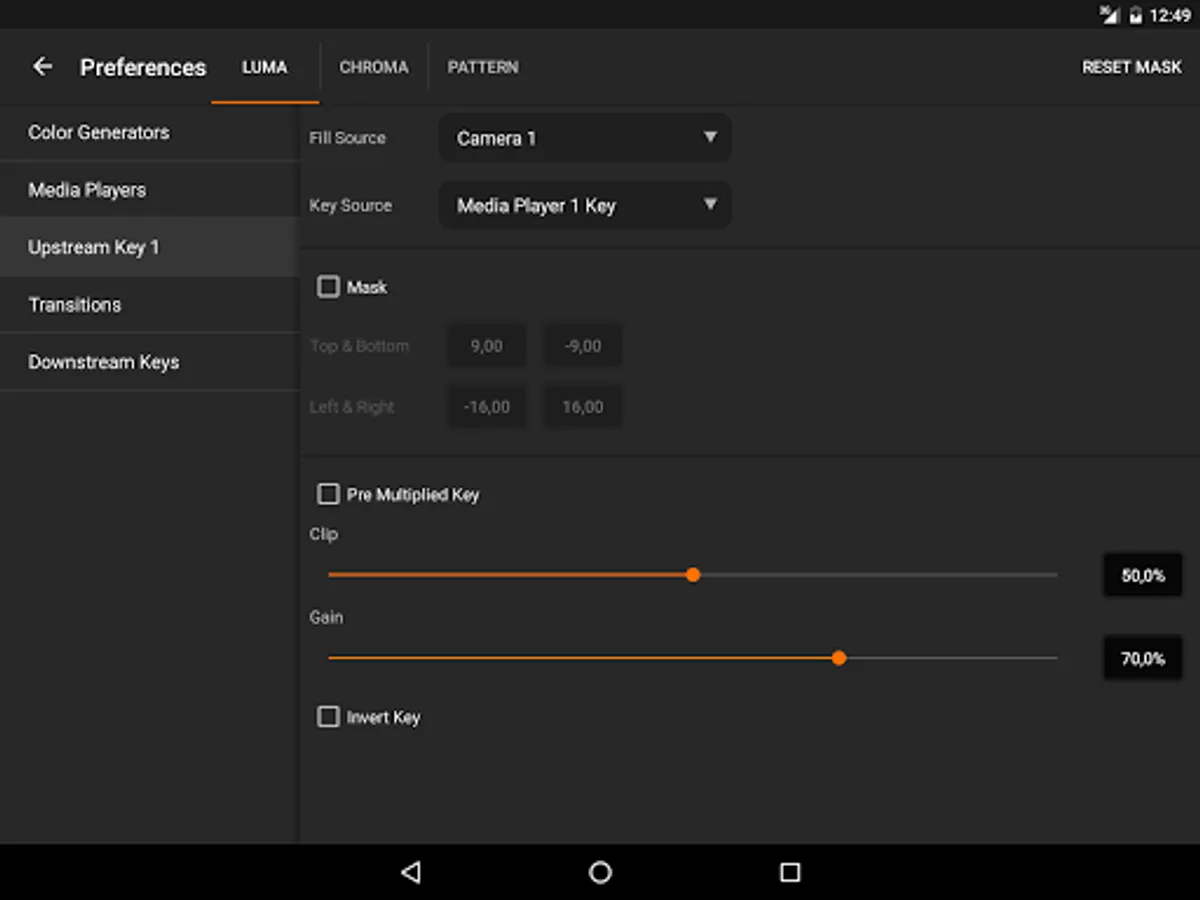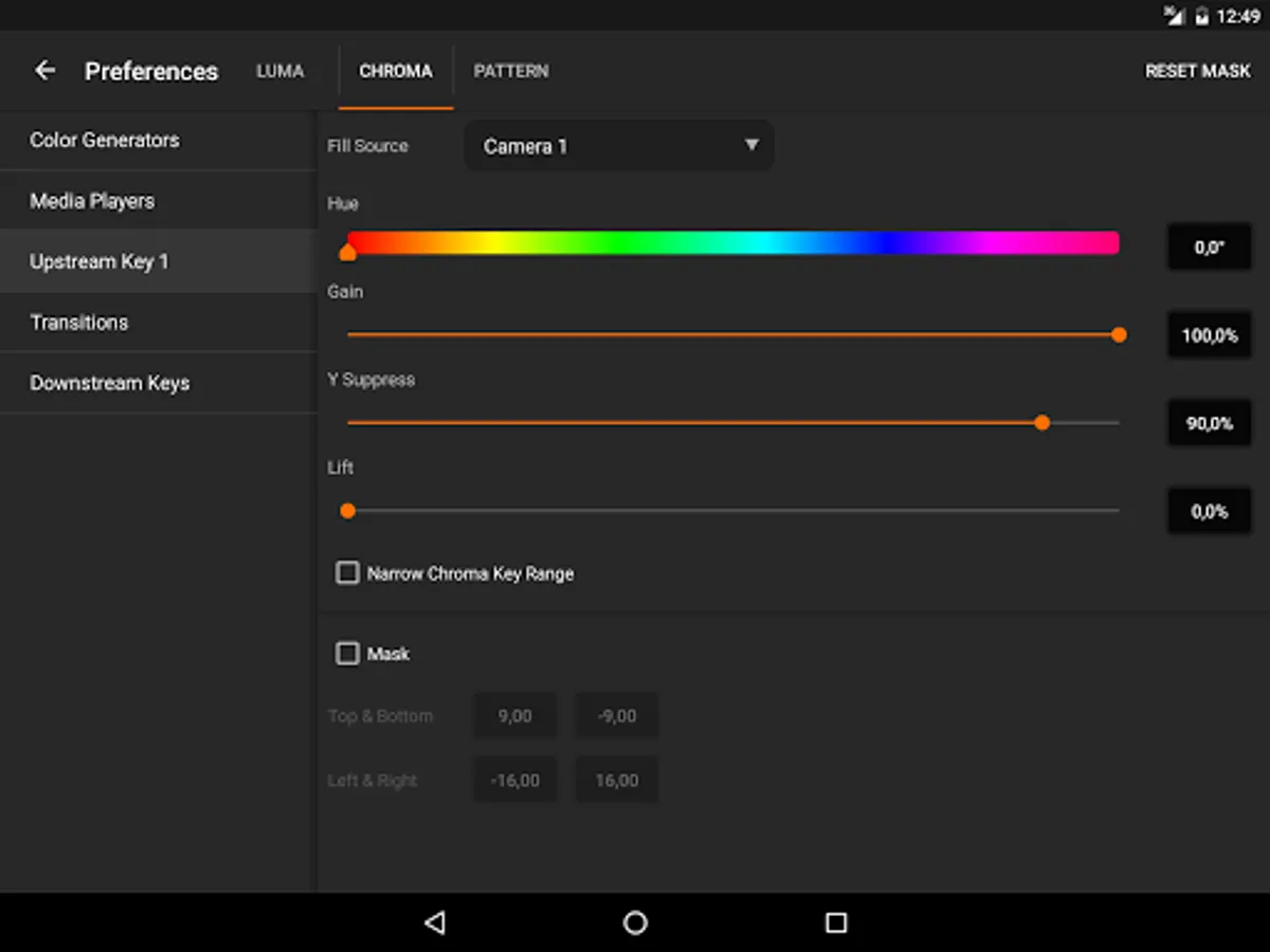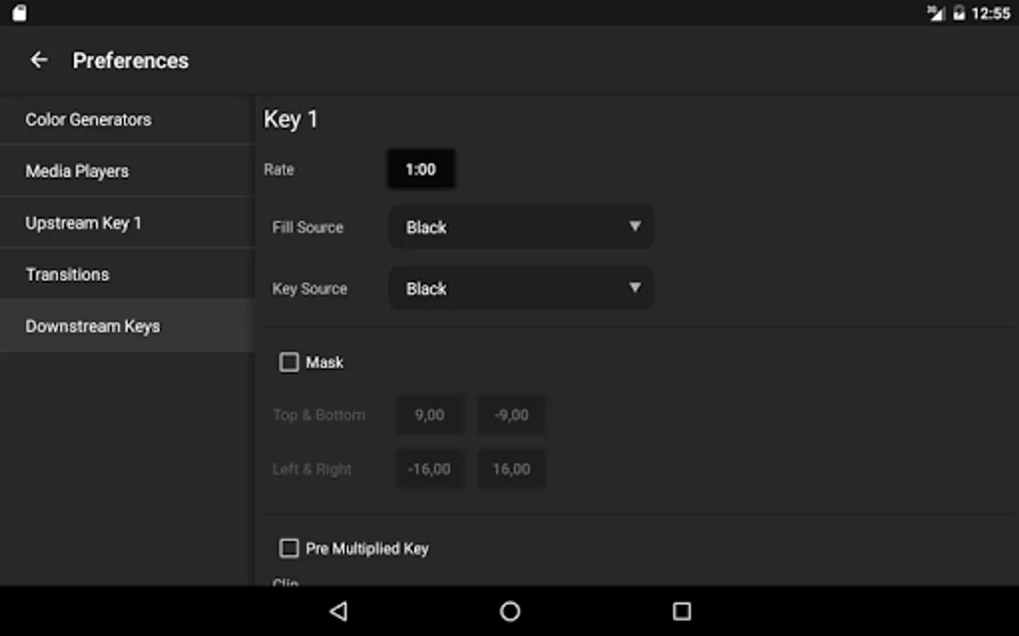 - Transition Control: Change of Program and Preview, Transitions, Fader and etc.